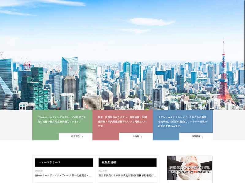 ITbookホールディングス Update:2022.10.31 カテゴリー:グロース 建設業 ニュース一覧 プライバシーポリシー 事業内容 有価証券報告書 沿革 経営理念 詳細 Visit 詳細 Visit