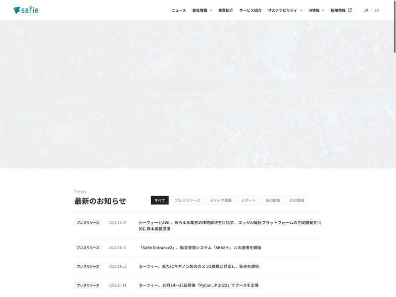 セーフィー Update:2022.10.31 カテゴリー:グロース 情報・通信業 サステナビリティ ニュース一覧 事業内容 免責注意事項 情報セキュリティ 沿革 社長メッセージ 詳細 Visit 詳細 Visit