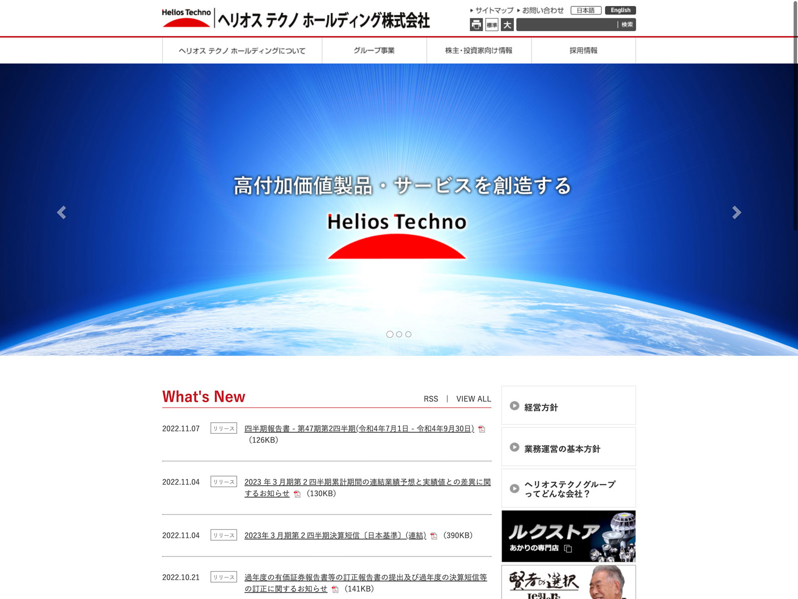 ソフィアホールディングス Update:2022.10.31 カテゴリー:スタンダード 情報・通信業 プライバシーポリシー 事業内容 免責注意事項 沿革 社長メッセージ 詳細 Visit 詳細 Visit