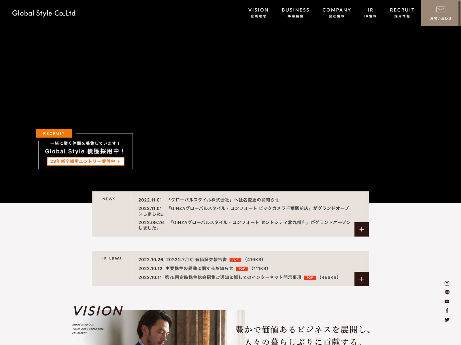 クルーバー Update:2022.10.31 カテゴリー:スタンダード 小売業 プライバシーポリシー 事業内容 免責注意事項 情報セキュリティ 沿革 社長メッセージ 経営理念 詳細 Visit 詳細 Visit