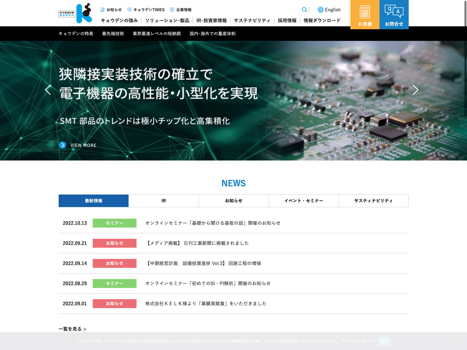 東亜ディーケーケー Update:2022.10.31 カテゴリー:スタンダード 電気機器 ニュース一覧 プライバシーポリシー 有価証券報告書 沿革 社長メッセージ 経営理念 詳細 Visit 詳細 Visit