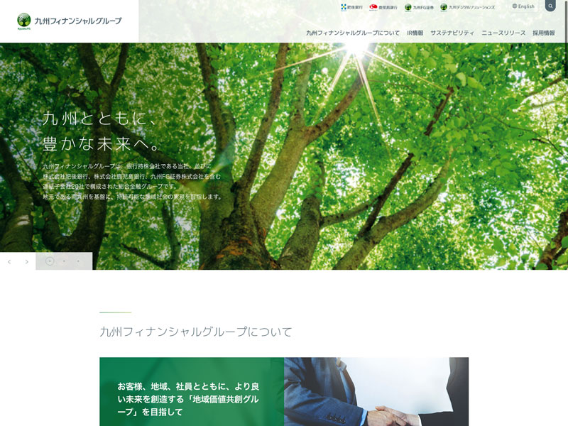 九州フィナンシャルグループ Update:2022.10.31 カテゴリー:プライム 銀行業 コンプライアンス サステナビリティ ニュース一覧 プライバシーポリシー 有価証券報告書 社長メッセージ 経営理念 詳細 Visit 詳細 Visit
