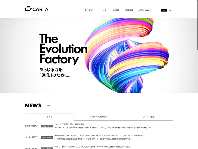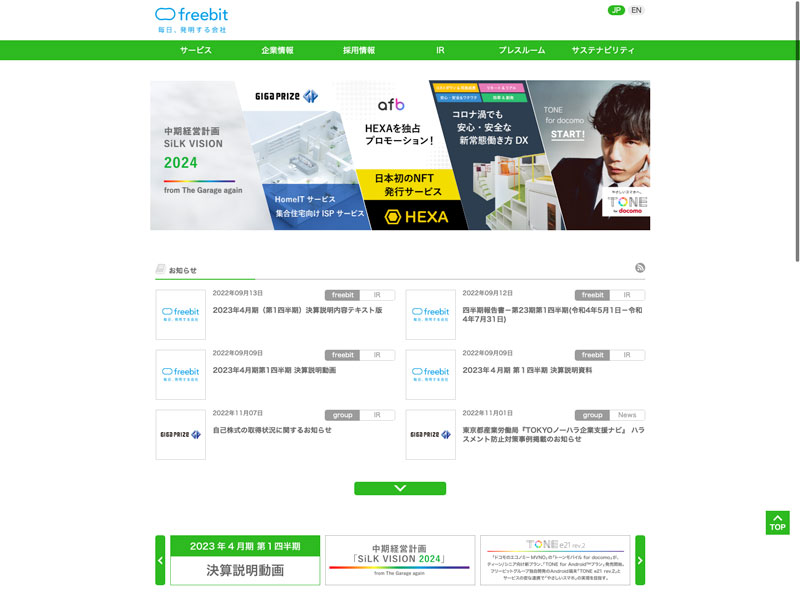 フリービット Update:2022.10.31 カテゴリー:プライム 情報・通信業 サステナビリティ ニュース一覧 プライバシーポリシー 事業内容 免責注意事項 有価証券報告書 沿革 詳細 Visit 詳細 Visit