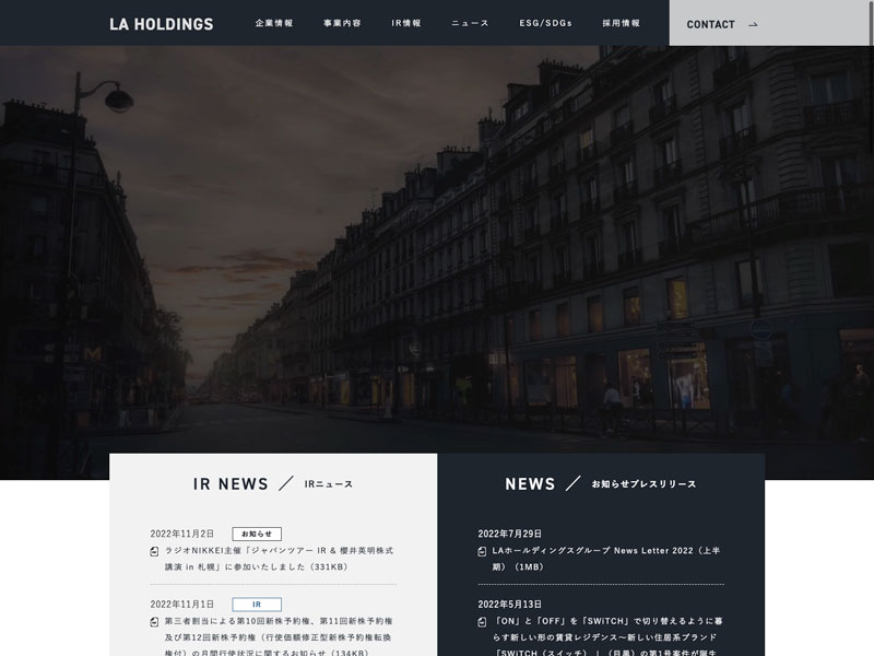 ストライダーズ Update:2022.10.31 カテゴリー:スタンダード 不動産業 サステナビリティ ニュース一覧 プライバシーポリシー 事業内容 免責注意事項 有価証券報告書 沿革 社長メッセージ 詳細 Visit 詳細 Visit