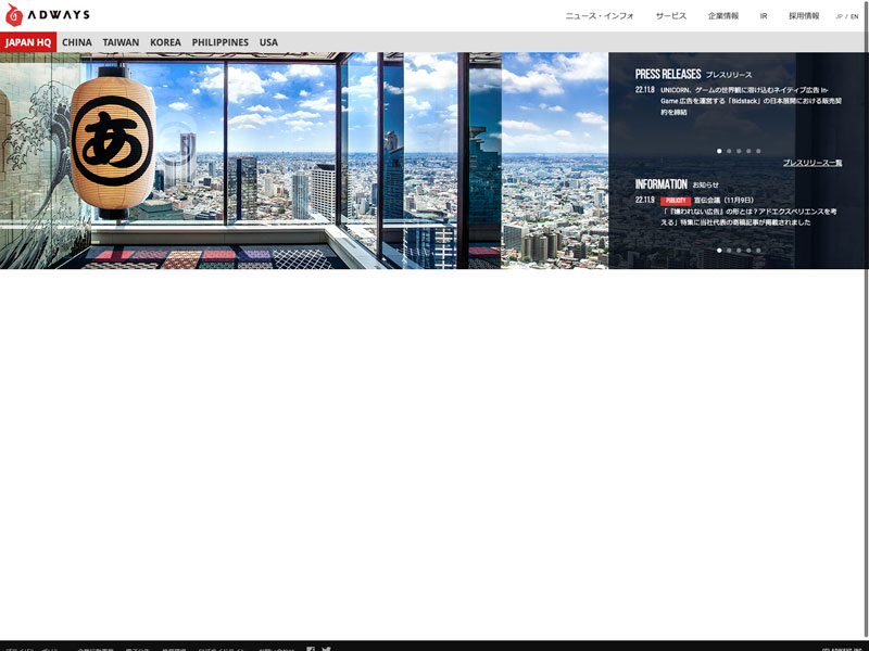 サイバーエージェント Update:2022.10.31 カテゴリー:プライム サービス業 コンプライアンス サステナビリティ ニュース一覧 ビジョン プライバシーポリシー 情報セキュリティ 有価証券報告書 沿革 詳細 Visit 詳細 Visit