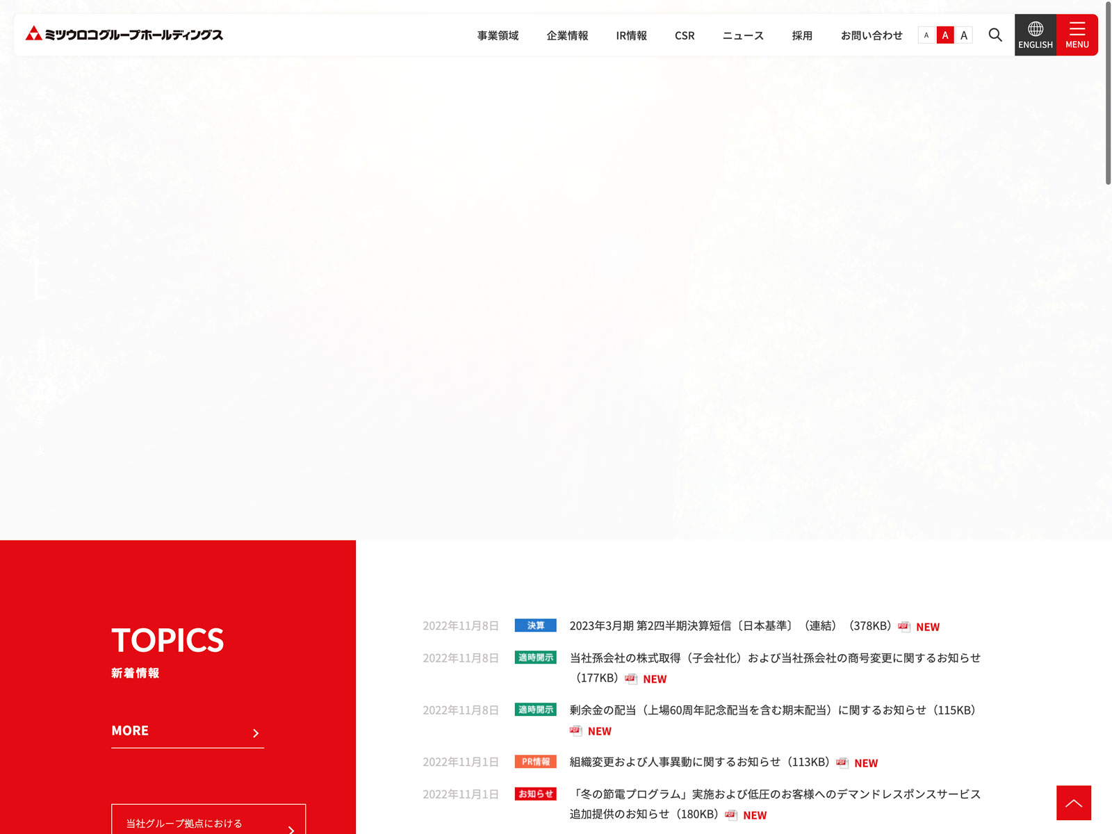 ミツウロコグループホールディングス Update:2022.10.31 カテゴリー:スタンダード 卸売業 コンプライアンス プライバシーポリシー 事業内容 免責注意事項 沿革 詳細 Visit 詳細 Visit