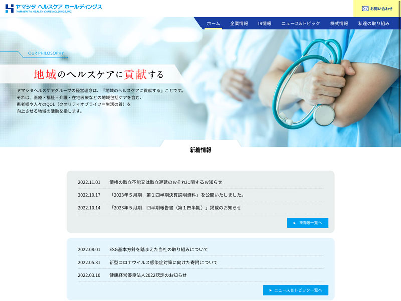 ヤマシタヘルスケアホールディングス Update:2022.10.31 カテゴリー:スタンダード 卸売業 コンプライアンス ニュース一覧 免責注意事項 有価証券報告書 沿革 経営理念 詳細 Visit 詳細 Visit