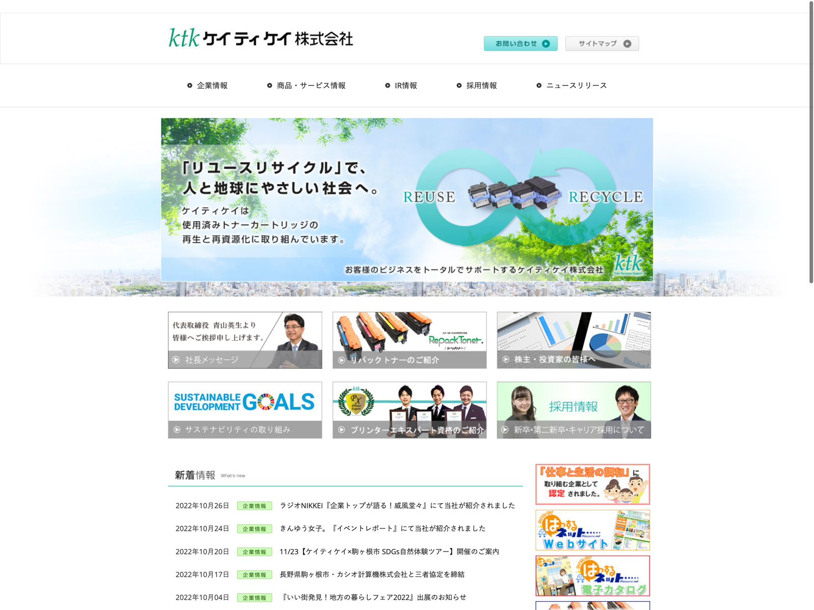 ケイティケイ Update:2022.10.31 カテゴリー:スタンダード 卸売業 サステナビリティ プライバシーポリシー 免責注意事項 沿革 社長メッセージ 経営理念 詳細 Visit 詳細 Visit