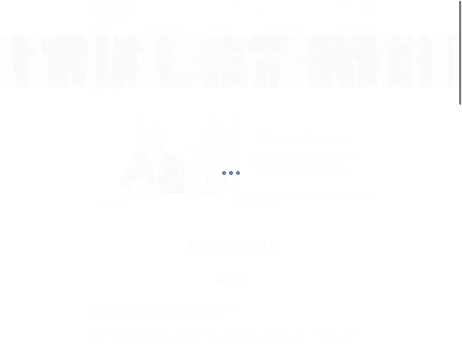 IMAGICA GROUP Update:2022.10.31 カテゴリー:プライム 情報・通信業 サステナビリティ ニュース一覧 プライバシーポリシー 事業内容 有価証券報告書 沿革 詳細 Visit 詳細 Visit