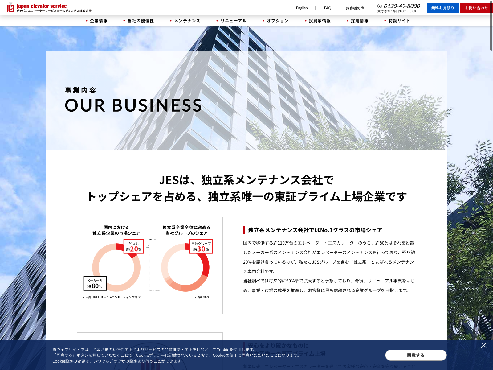 ジャパンエレベーターサービスホールディングス Update:2022.10.31 カテゴリー:プライム サービス業 ニュース一覧 事業内容 有価証券報告書 沿革 社長メッセージ 詳細 Visit 詳細 Visit