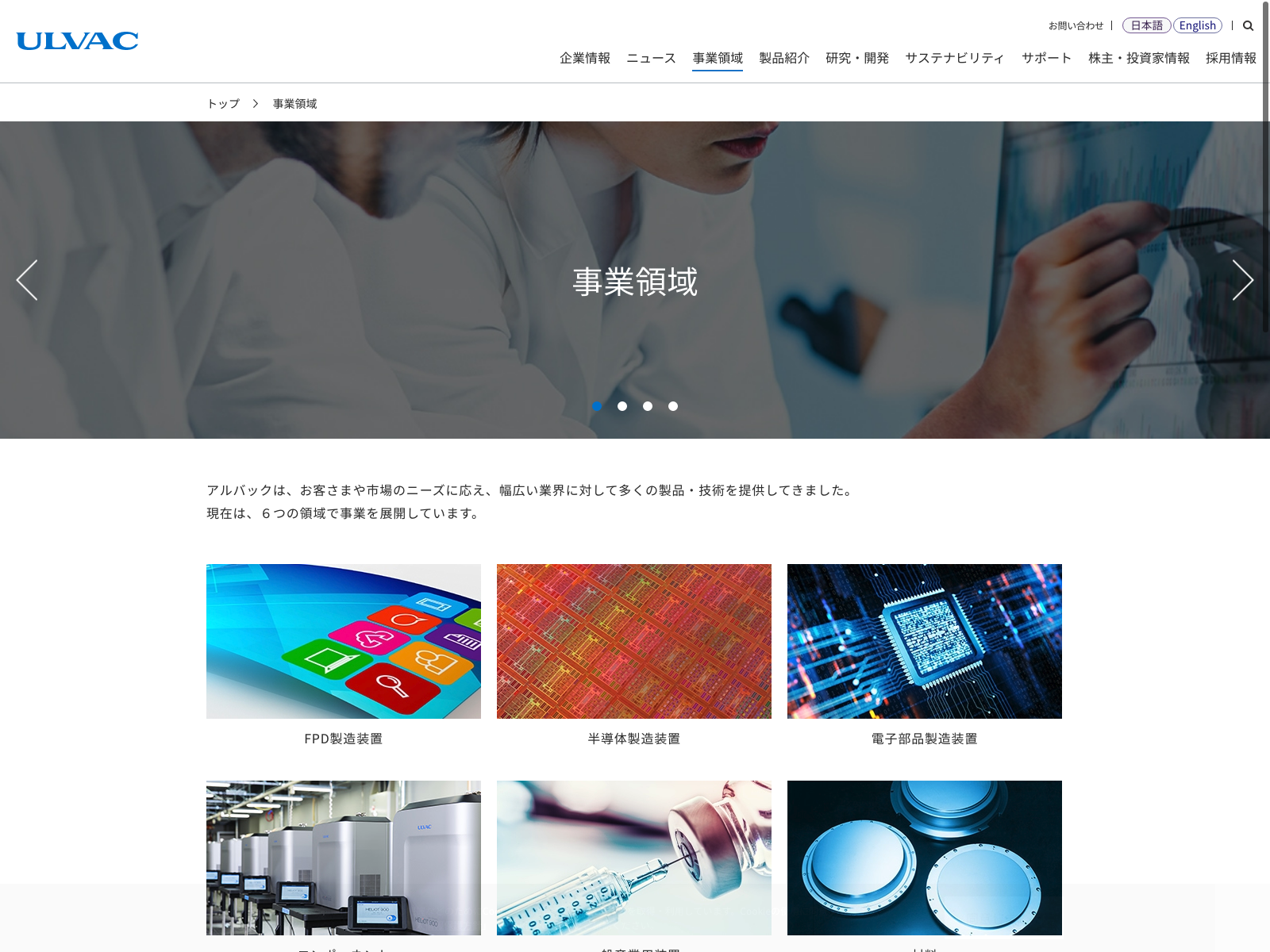 アルバック Update:2022.10.31 カテゴリー:プライム 電気機器 コンプライアンス サステナビリティ プライバシーポリシー 事業内容 沿革 社長メッセージ 詳細 Visit 詳細 Visit