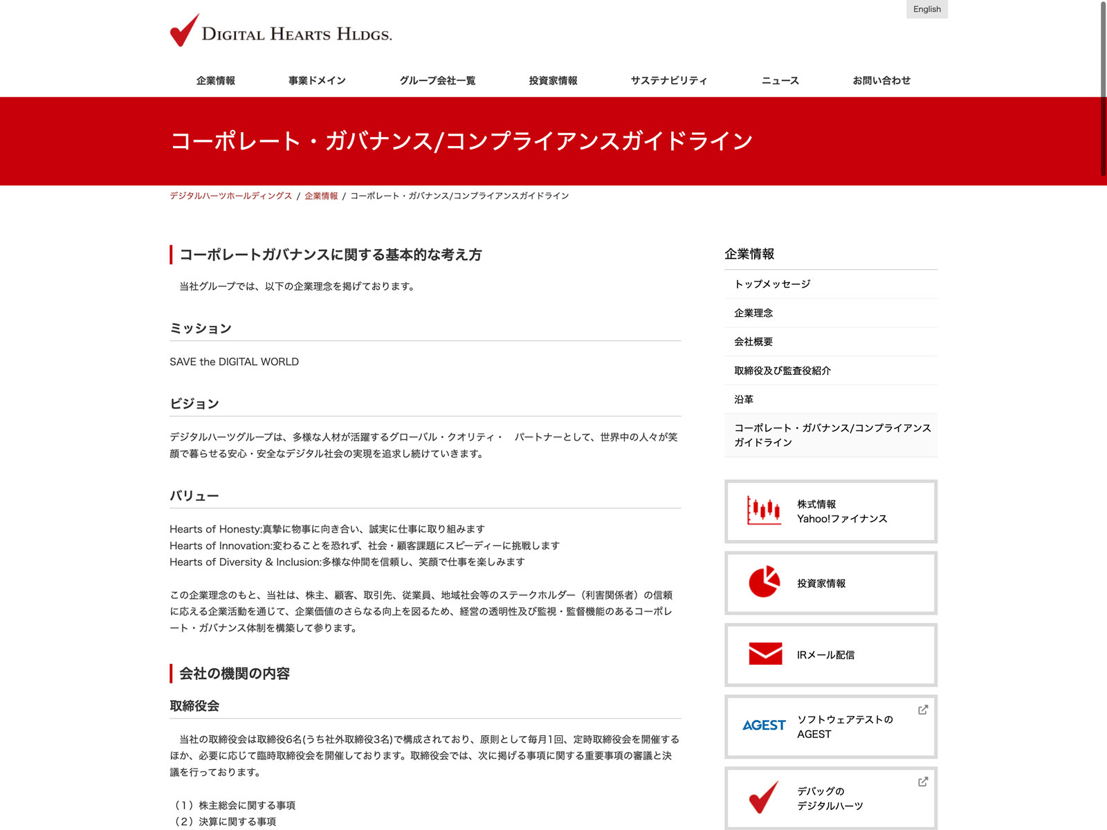 デジタルハーツホールディングス Update:2022.10.31 カテゴリー:プライム 情報・通信業 コンプライアンス サステナビリティ 事業内容 有価証券報告書 沿革 詳細 Visit 詳細 Visit