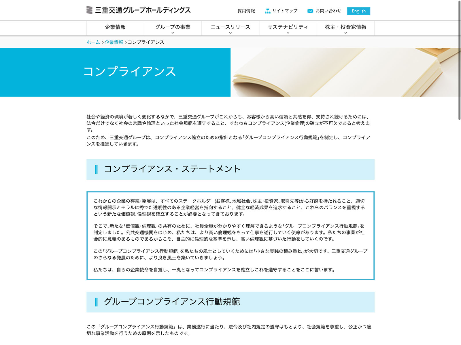 三重交通グループホールディングス Update:2022.10.31 カテゴリー:プライム 不動産業 コンプライアンス サステナビリティ ニュース一覧 プライバシーポリシー 有価証券報告書 沿革 詳細 Visit 詳細 Visit