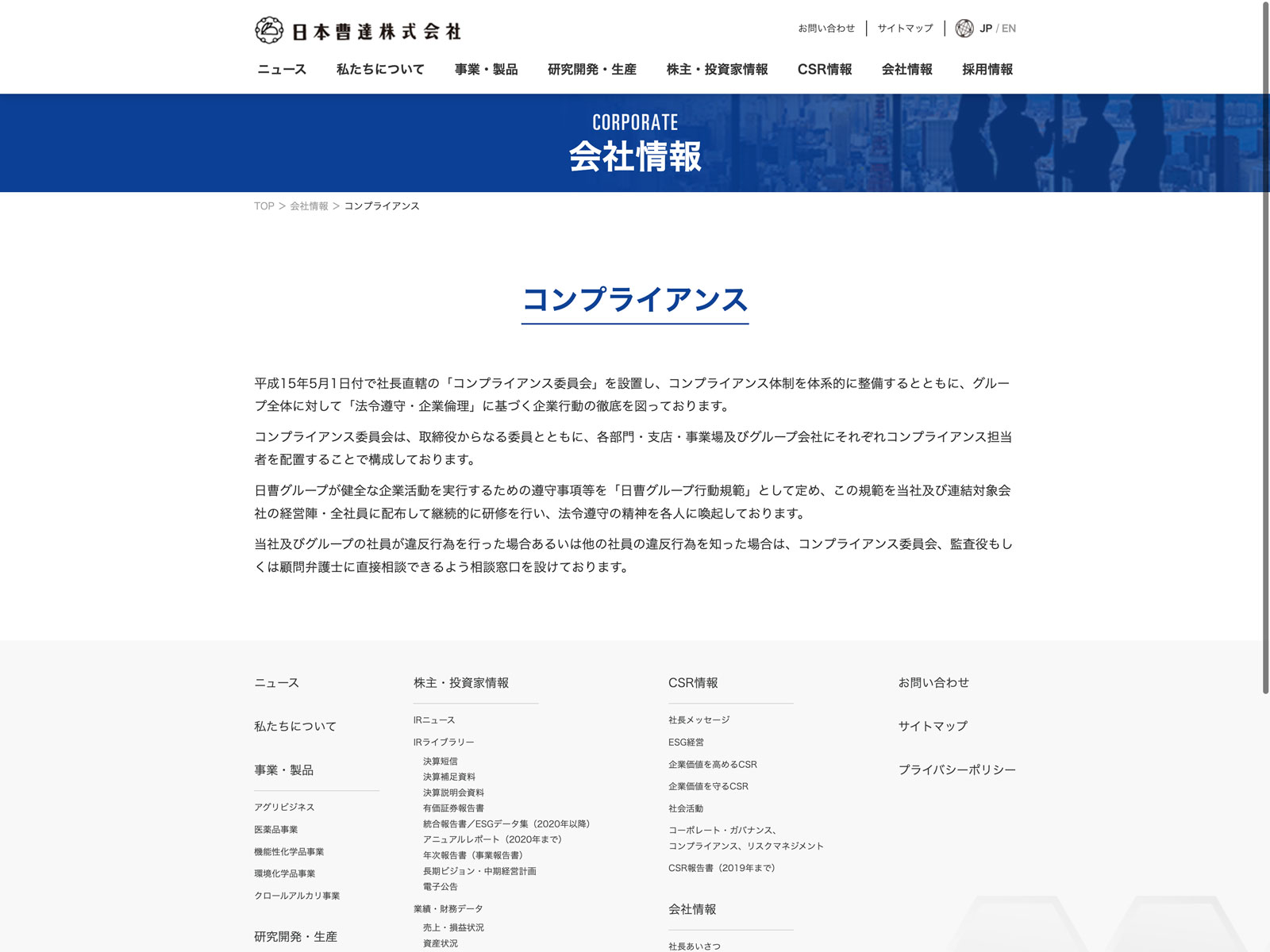 日本化薬 Update:2022.10.31 カテゴリー:プライム 化学 コンプライアンス サステナビリティ プライバシーポリシー 免責注意事項 有価証券報告書 沿革 社長メッセージ 詳細 Visit 詳細 Visit