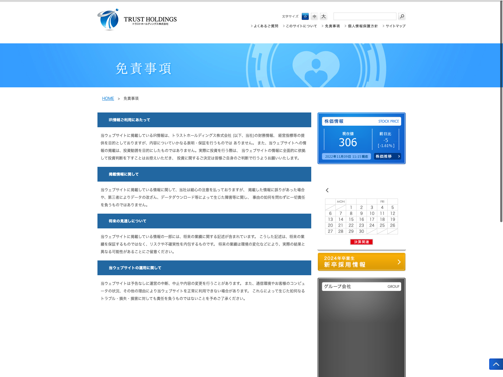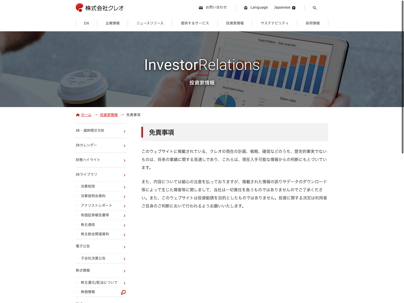 ケアネット Update:2022.10.31 カテゴリー:グロース サービス業 コンプライアンス プライバシーポリシー 免責注意事項 情報セキュリティ 有価証券報告書 沿革 詳細 Visit 詳細 Visit