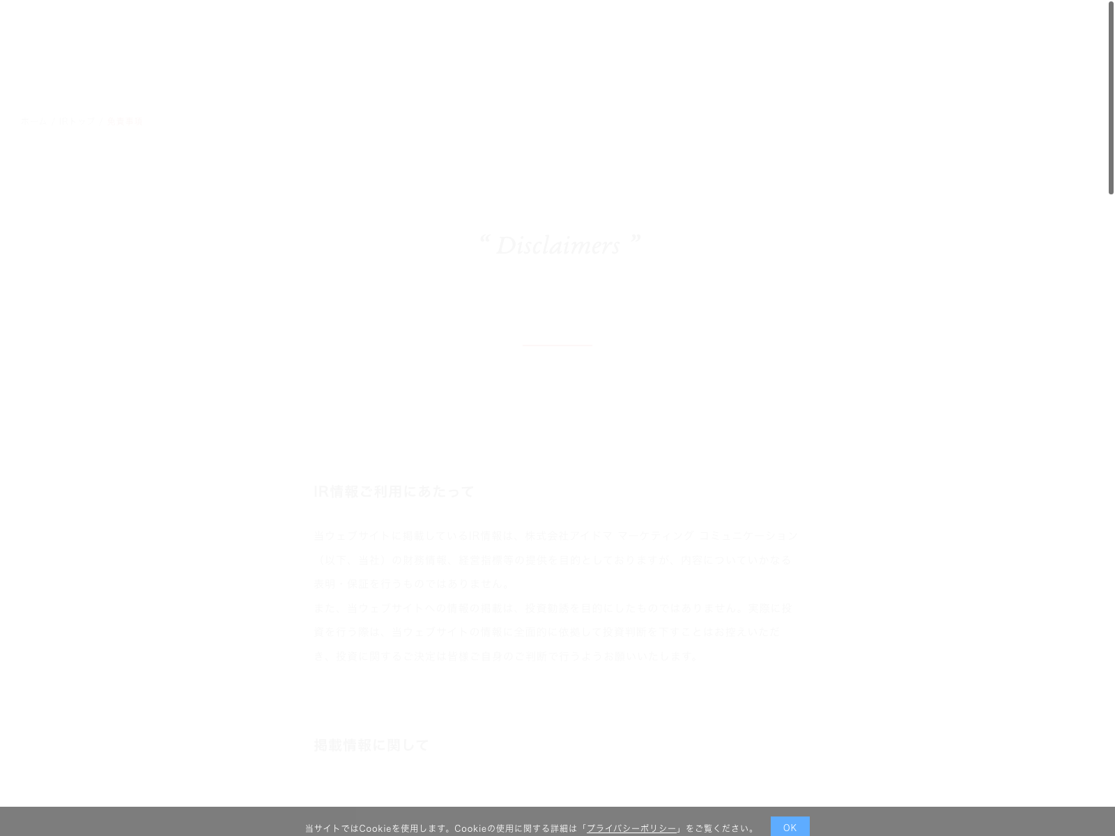 アイドママーケティングコミュニケーション Update:2022.10.31 カテゴリー:スタンダード 情報・通信業 ニュース一覧 ビジョン 事業内容 免責注意事項 沿革 詳細 Visit 詳細 Visit