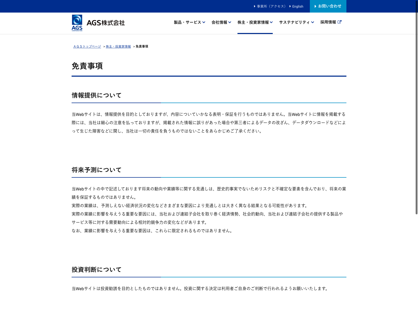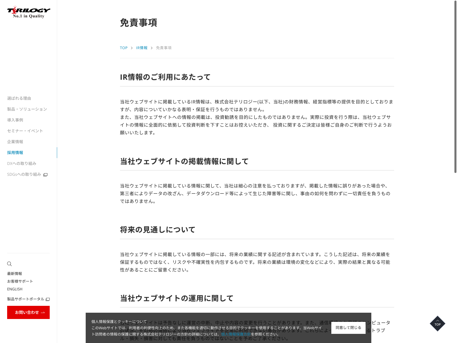 No.1 Update:2022.10.31 カテゴリー:スタンダード 卸売業 コンプライアンス ニュース一覧 プライバシーポリシー 免責注意事項 情報セキュリティ 沿革 社長メッセージ 詳細 Visit 詳細 Visit