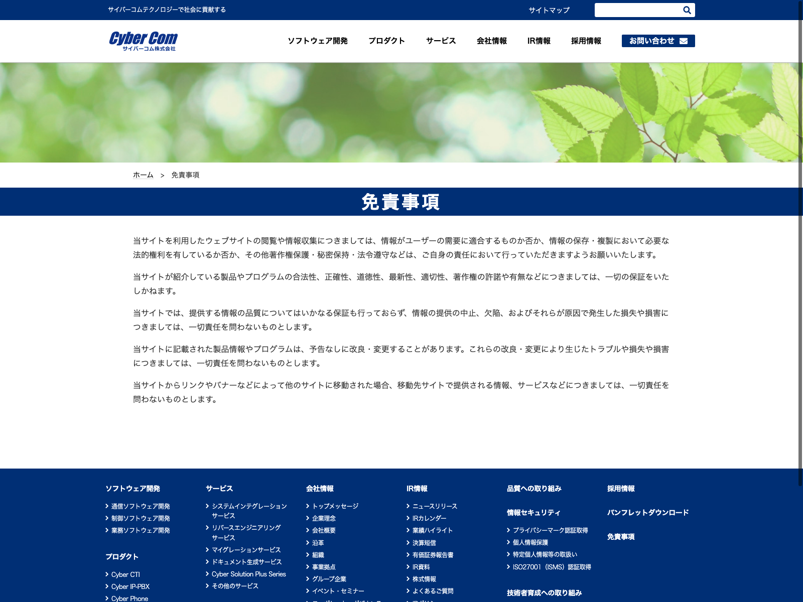 サイバーコム Update:2022.10.31 カテゴリー:スタンダード 情報・通信業 プライバシーポリシー 免責注意事項 情報セキュリティ 有価証券報告書 沿革 社長メッセージ 詳細 Visit 詳細 Visit