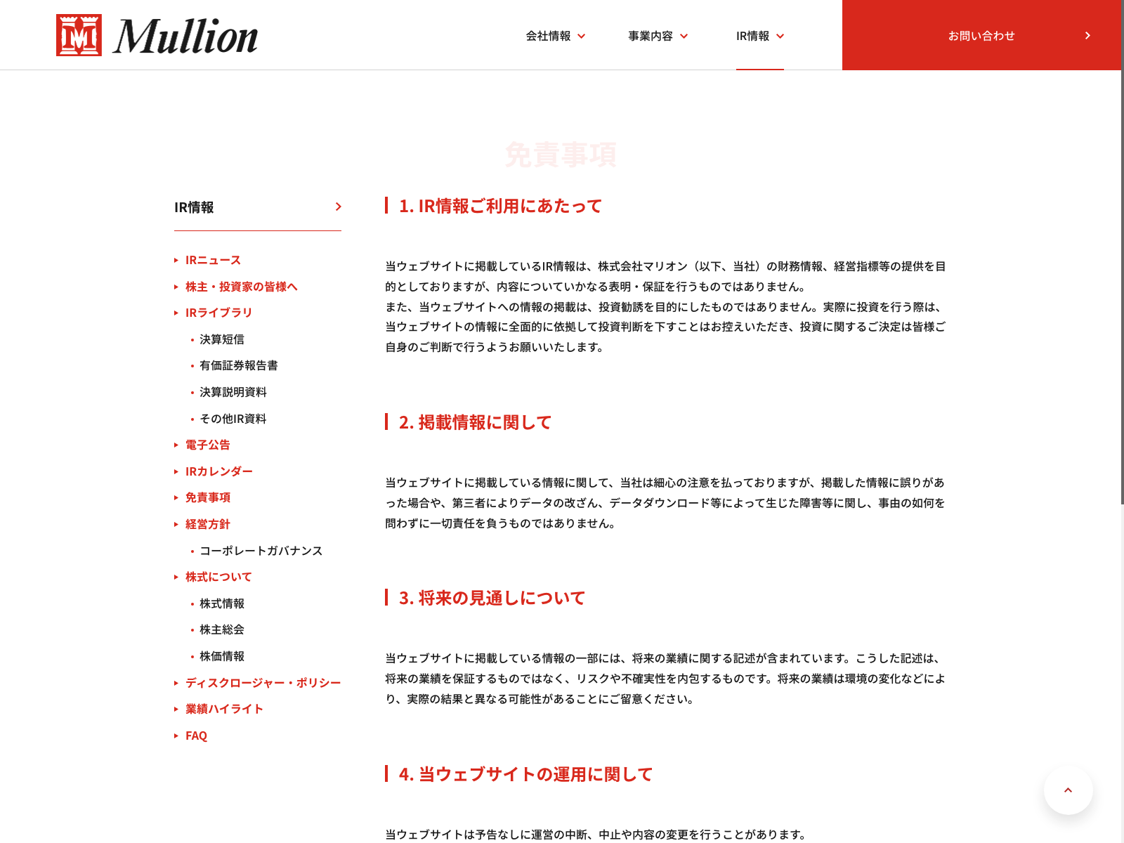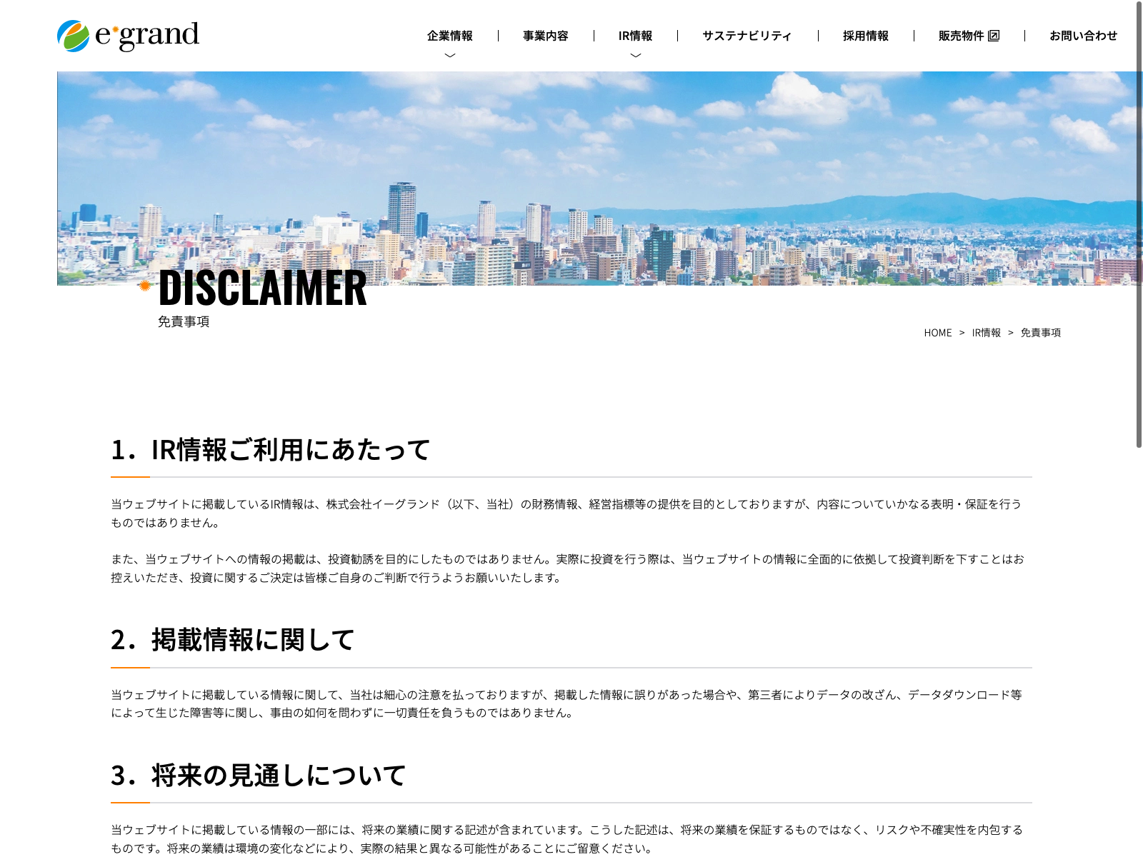 マリオン Update:2022.10.31 カテゴリー:スタンダード 不動産業 サステナビリティ ニュース一覧 プライバシーポリシー 事業内容 免責注意事項 情報セキュリティ 沿革 詳細 Visit 詳細 Visit