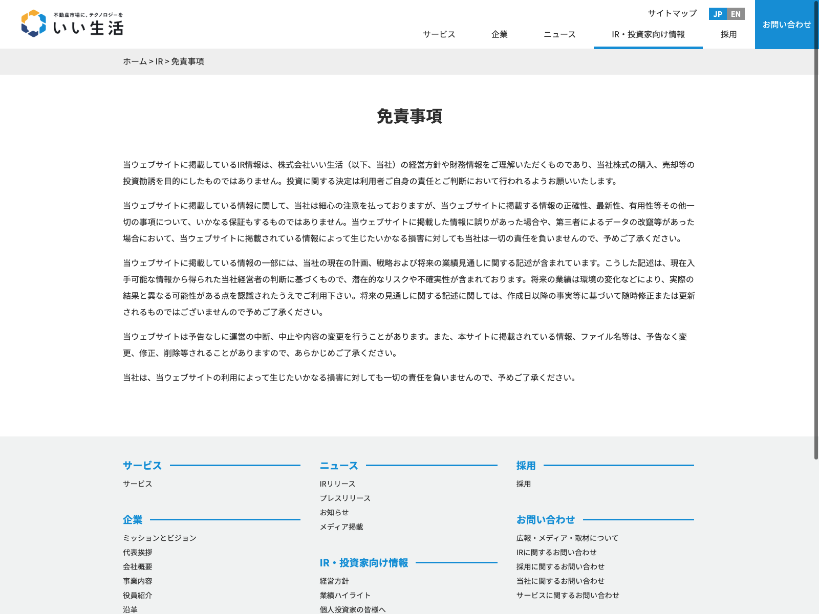 いい生活 Update:2022.10.31 カテゴリー:スタンダード 情報・通信業 サステナビリティ プライバシーポリシー 事業内容 免責注意事項 情報セキュリティ 有価証券報告書 沿革 詳細 Visit 詳細 Visit