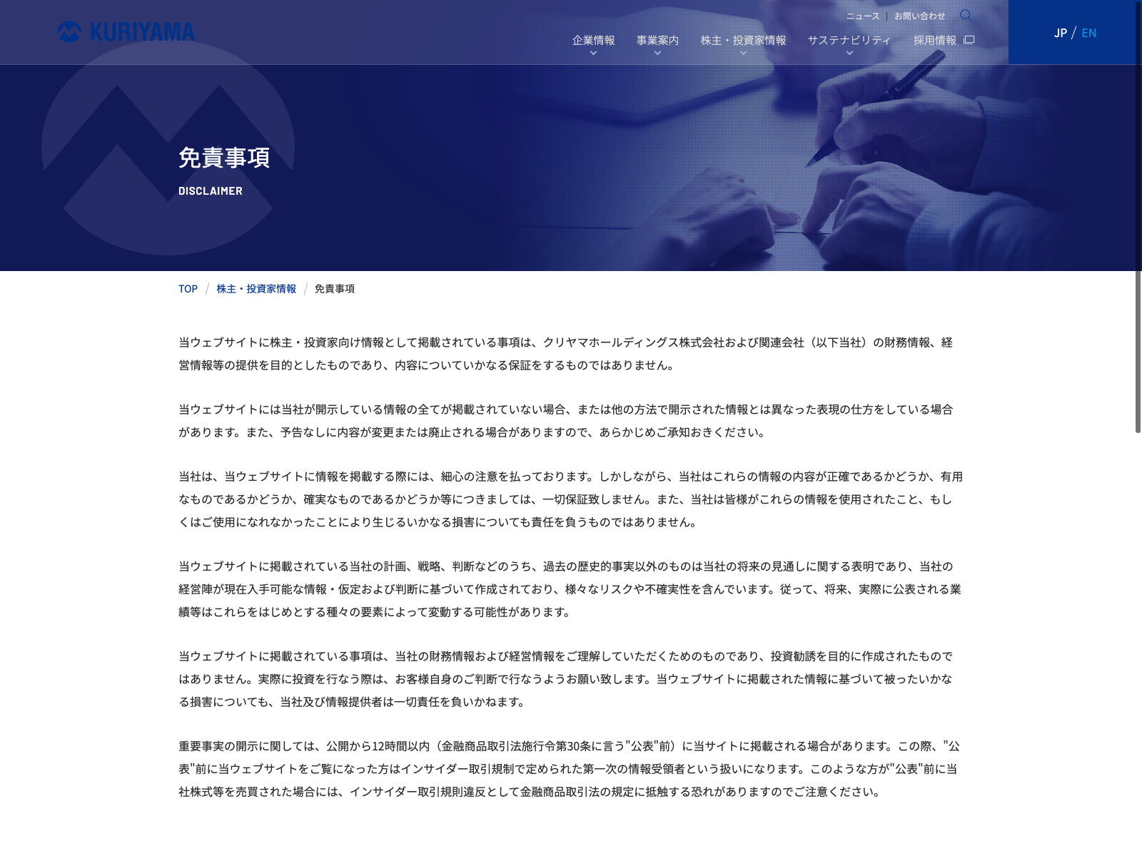 クリヤマホールディングス Update:2022.10.31 カテゴリー:スタンダード 卸売業 コンプライアンス サステナビリティ プライバシーポリシー 免責注意事項 有価証券報告書 詳細 Visit 詳細 Visit