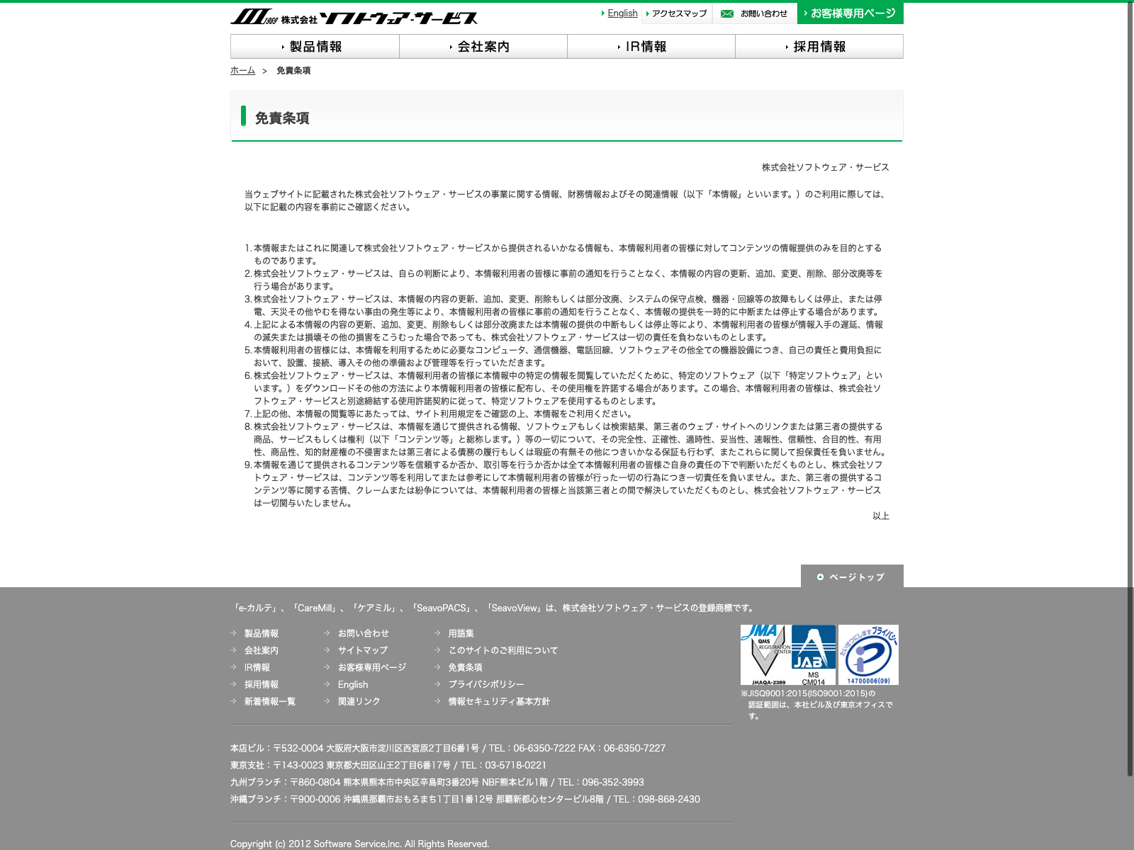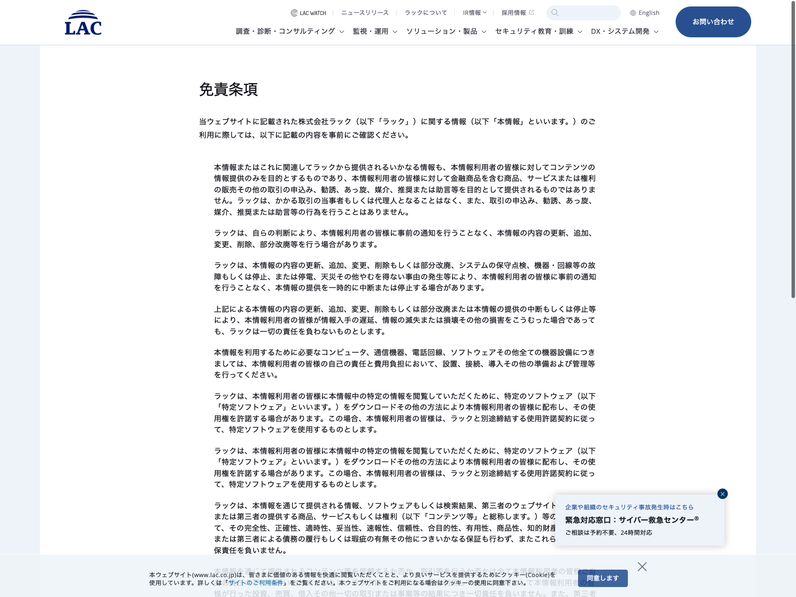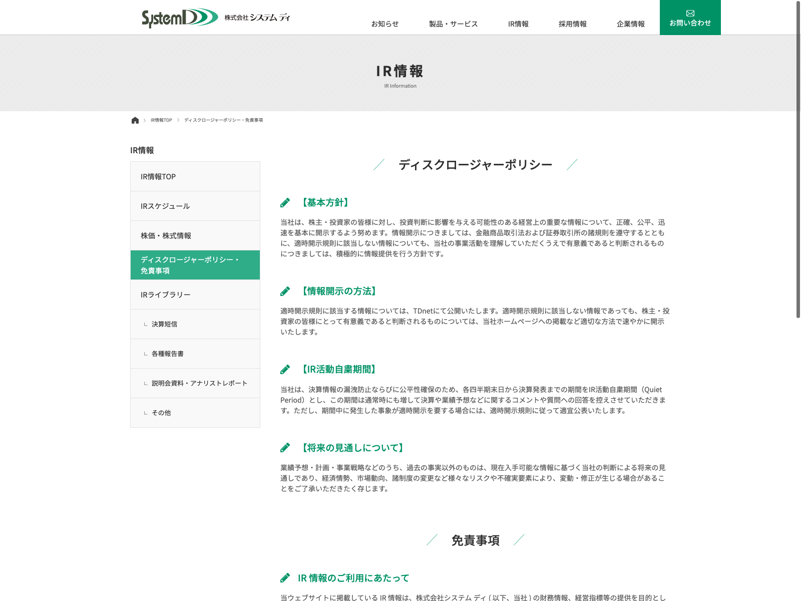 システム ディ Update:2022.10.31 カテゴリー:スタンダード 情報・通信業 コンプライアンス プライバシーポリシー 免責注意事項 情報セキュリティ 沿革 詳細 Visit 詳細 Visit