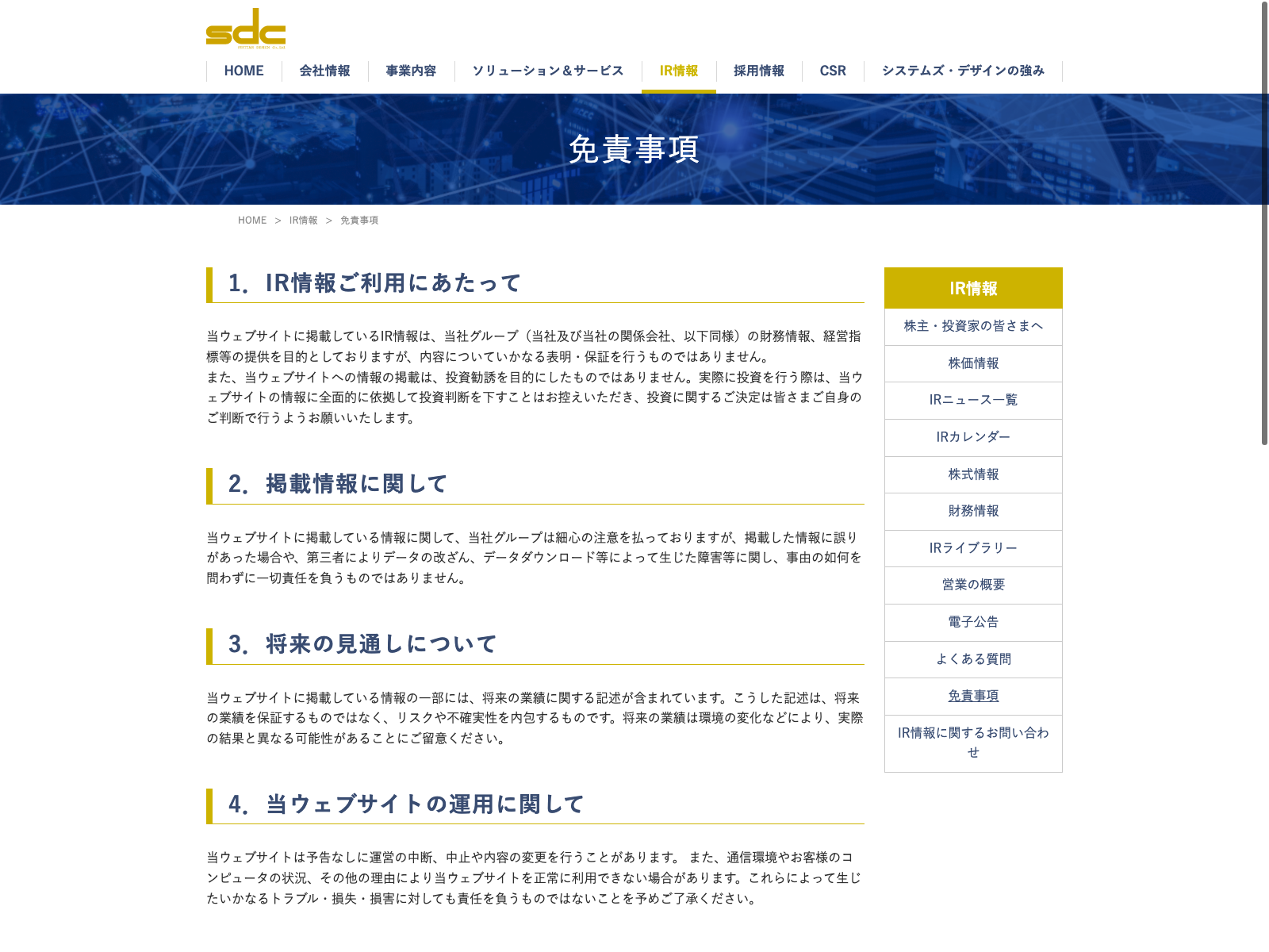 システムズ・デザイン Update:2022.10.31 カテゴリー:スタンダード 情報・通信業 コンプライアンス ニュース一覧 プライバシーポリシー 事業内容 免責注意事項 沿革 社長メッセージ 詳細 Visit 詳細 Visit