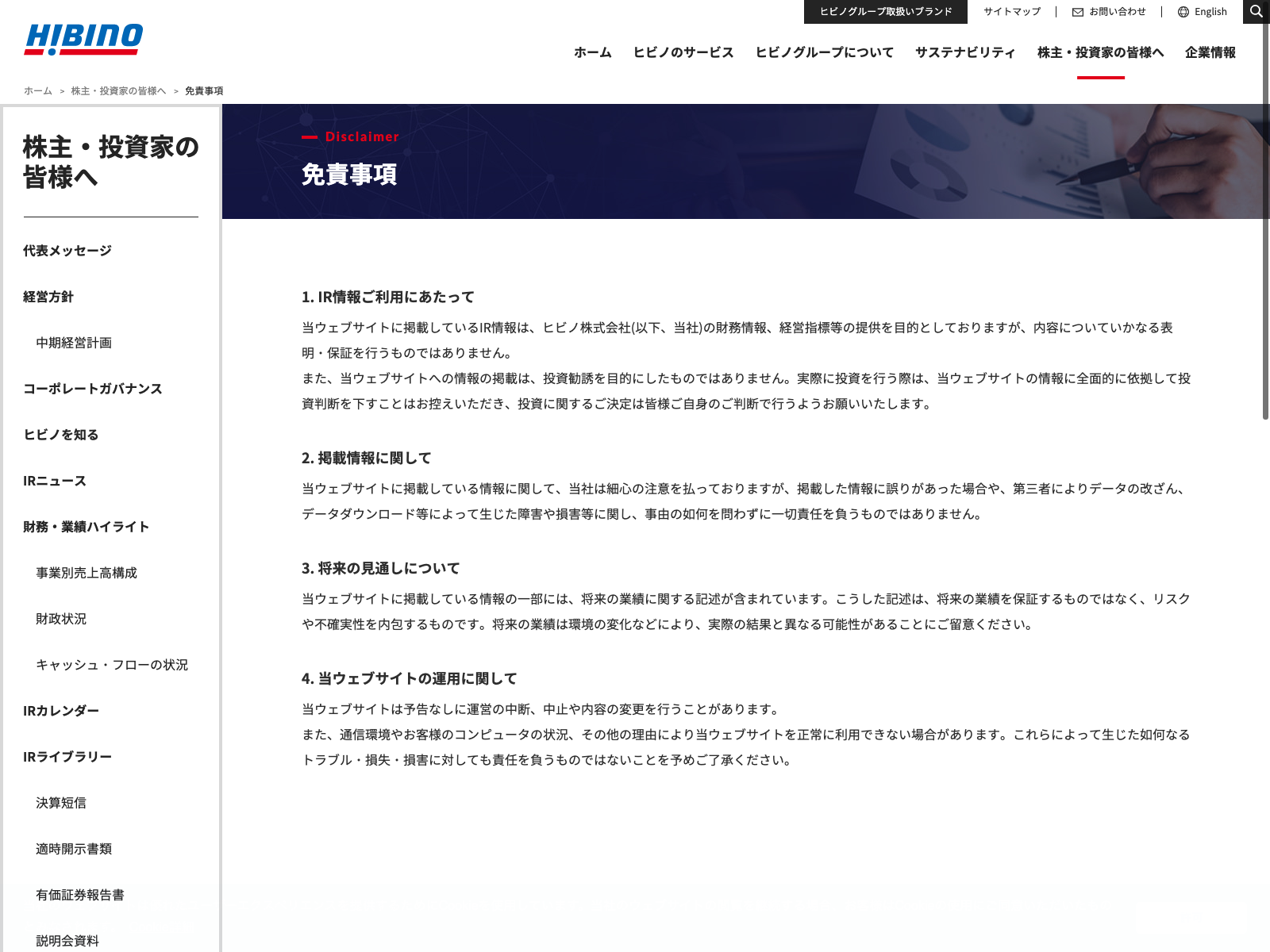 ヒビノ Update:2022.10.31 カテゴリー:スタンダード サービス業 サステナビリティ ニュース一覧 プライバシーポリシー 免責注意事項 有価証券報告書 沿革 詳細 Visit 詳細 Visit