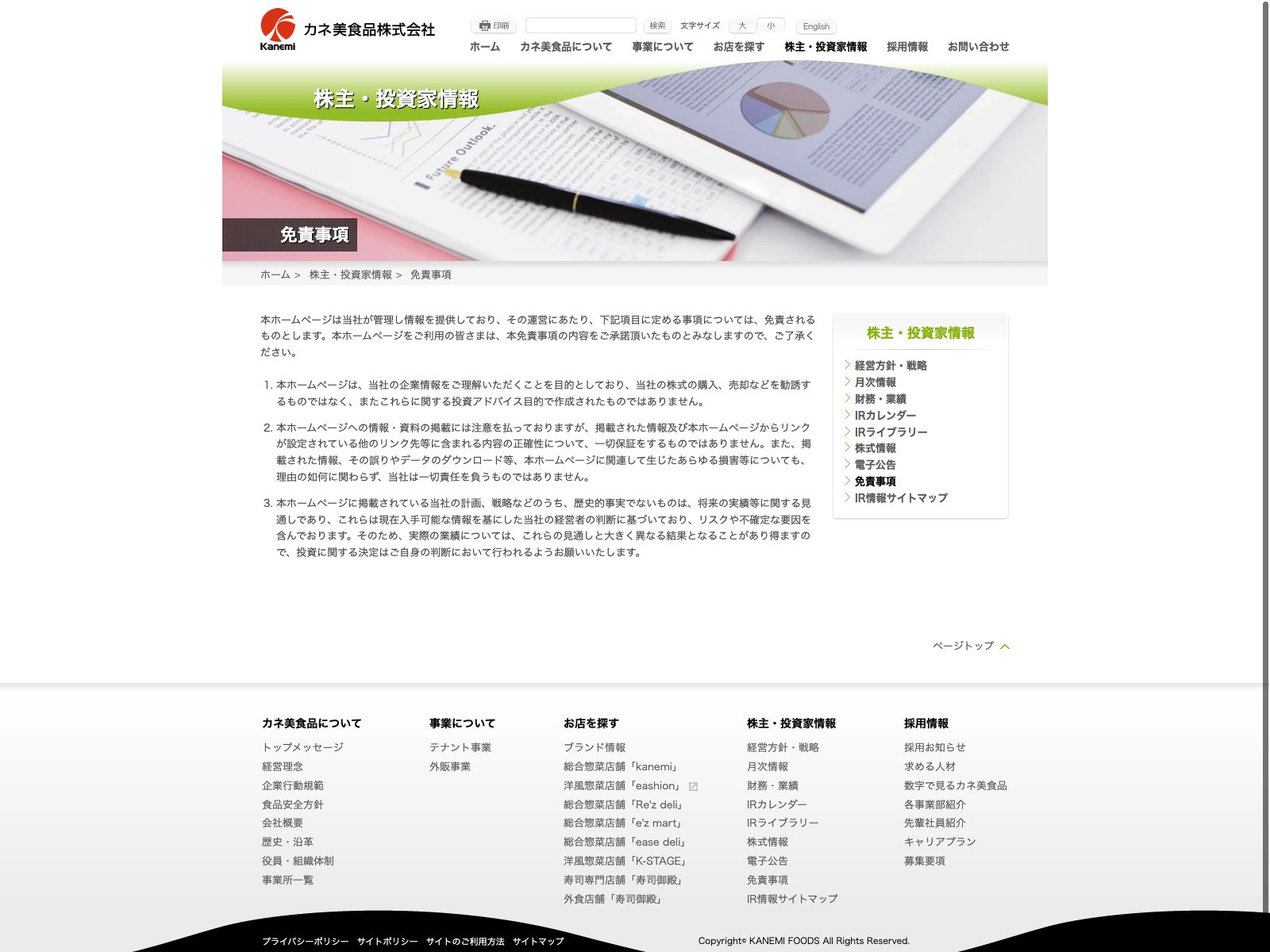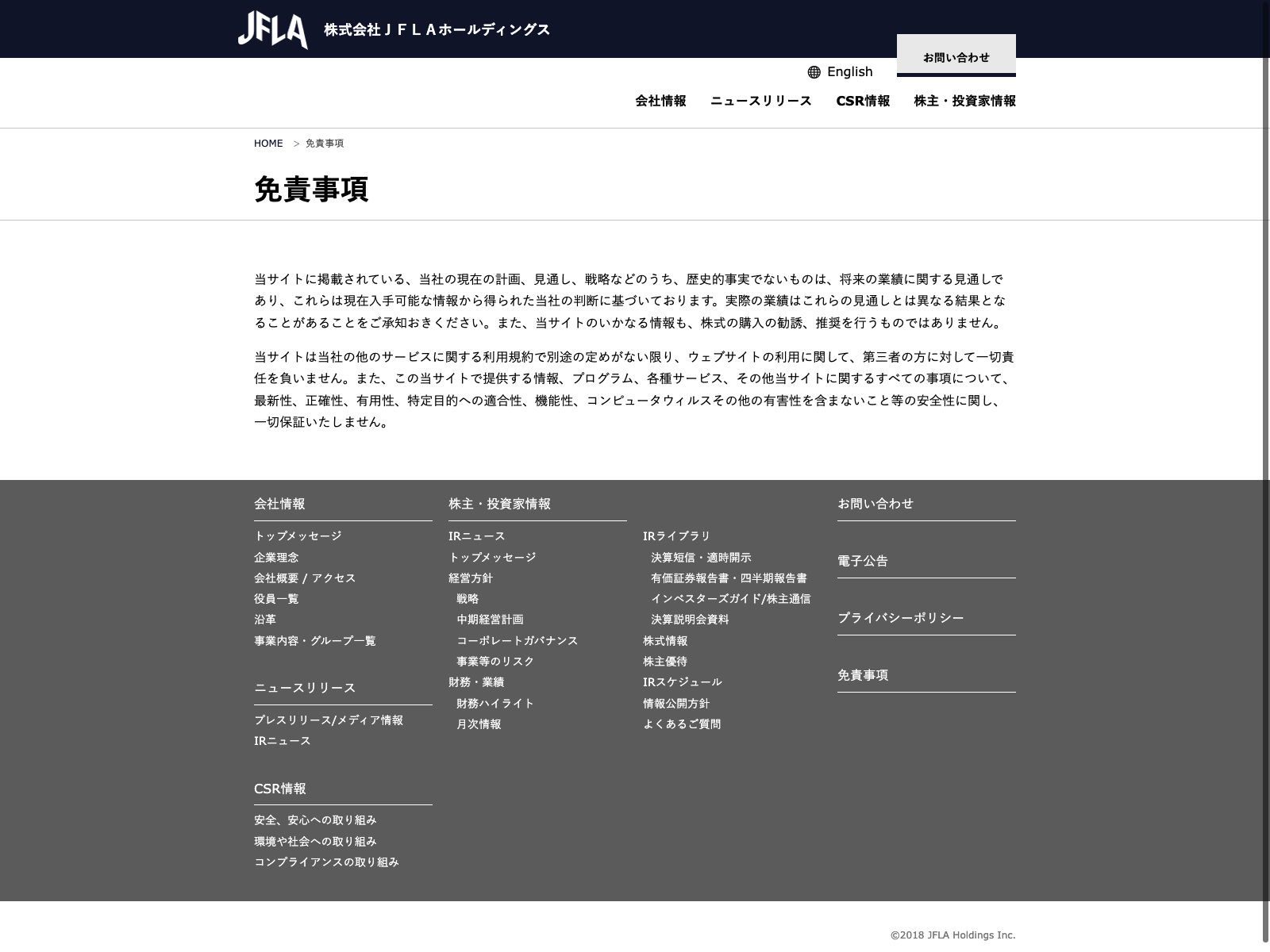 JFLAホールディングス Update:2022.10.31 カテゴリー:スタンダード 小売業 コンプライアンス 事業内容 免責注意事項 有価証券報告書 沿革 社長メッセージ 詳細 Visit 詳細 Visit