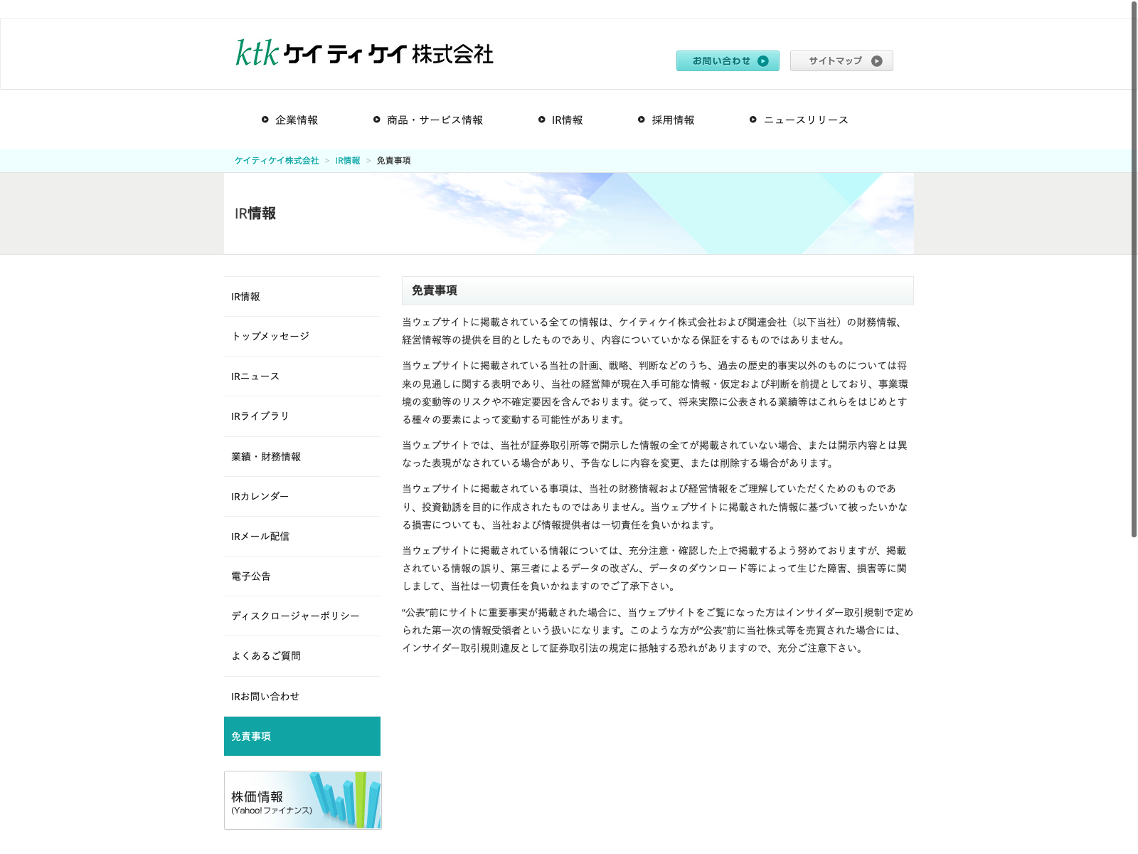 ケイティケイ Update:2022.10.31 カテゴリー:スタンダード 卸売業 サステナビリティ プライバシーポリシー 免責注意事項 沿革 社長メッセージ 経営理念 詳細 Visit 詳細 Visit