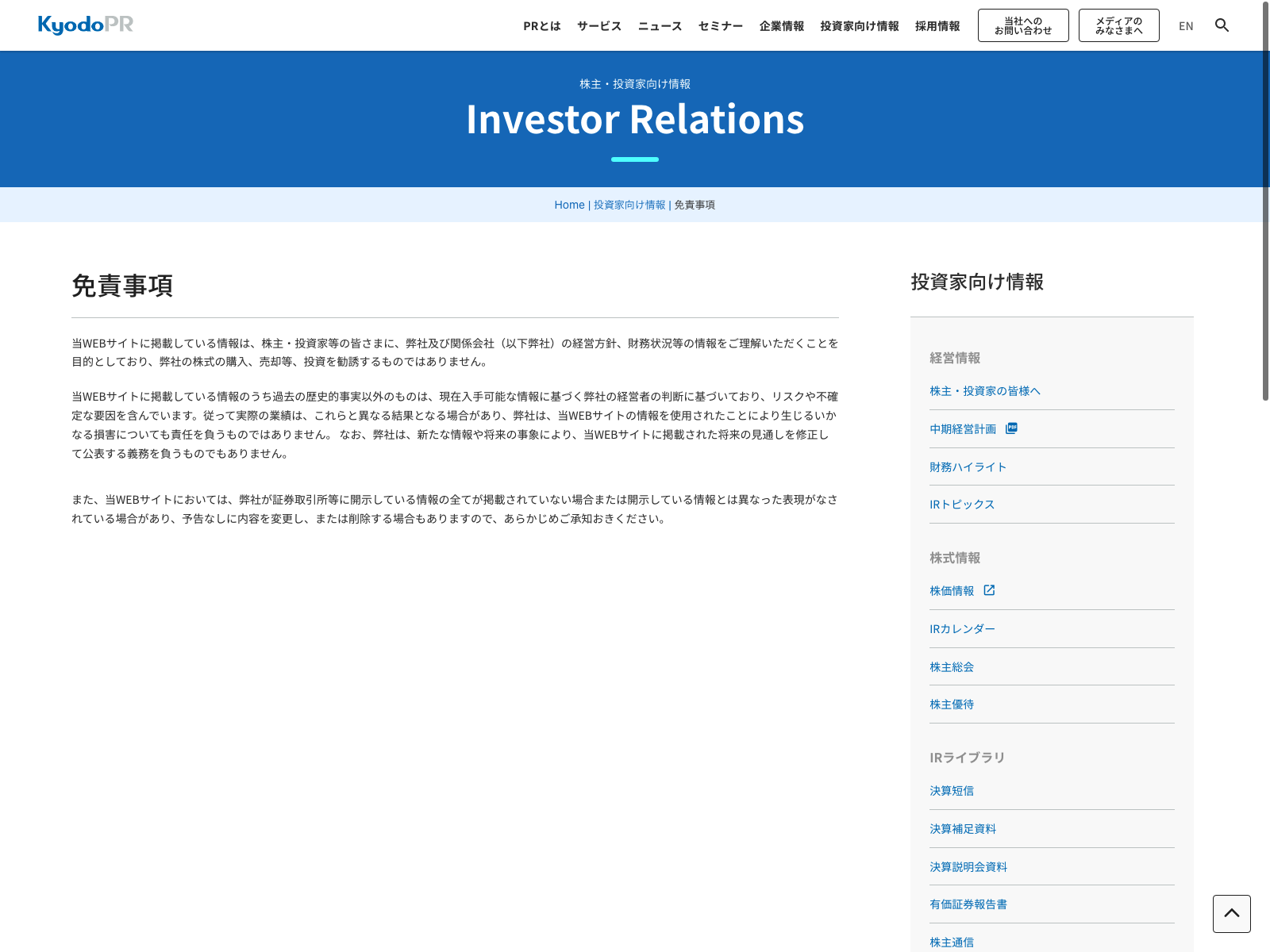 共同ピーアール Update:2022.10.31 カテゴリー:スタンダード サービス業 サステナビリティ ニュース一覧 プライバシーポリシー 免責注意事項 情報セキュリティ 有価証券報告書 沿革 経営理念 詳細 Visit 詳細 Visit