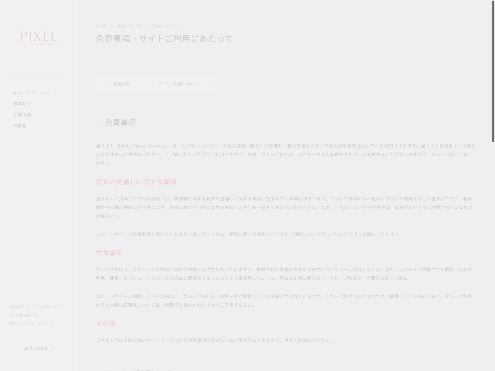 ピクセルカンパニーズ Update:2022.10.31 カテゴリー:スタンダード 卸売業 ニュース一覧 プライバシーポリシー 免責注意事項 情報セキュリティ 有価証券報告書 詳細 Visit 詳細 Visit