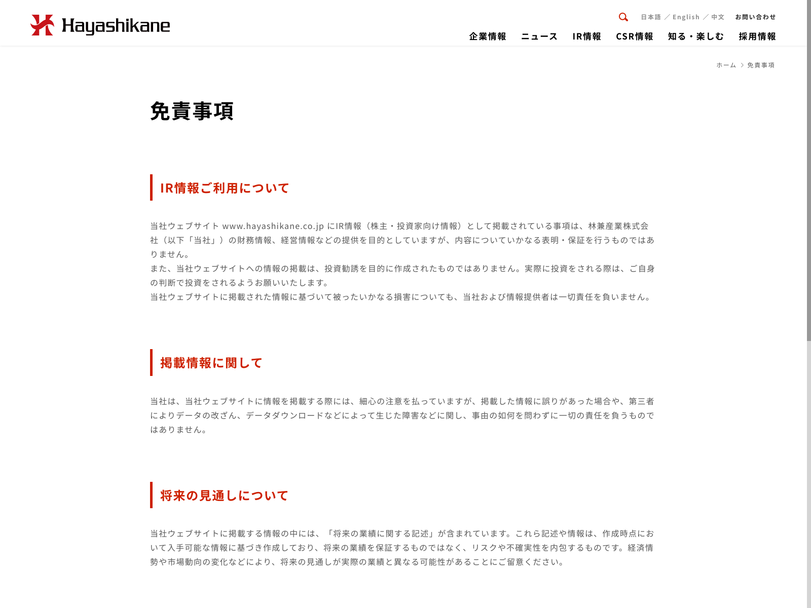 林兼産業 Update:2022.10.31 カテゴリー:スタンダード 食料品 コンプライアンス ニュース一覧 免責注意事項 有価証券報告書 沿革 社長メッセージ 経営理念 詳細 Visit 詳細 Visit