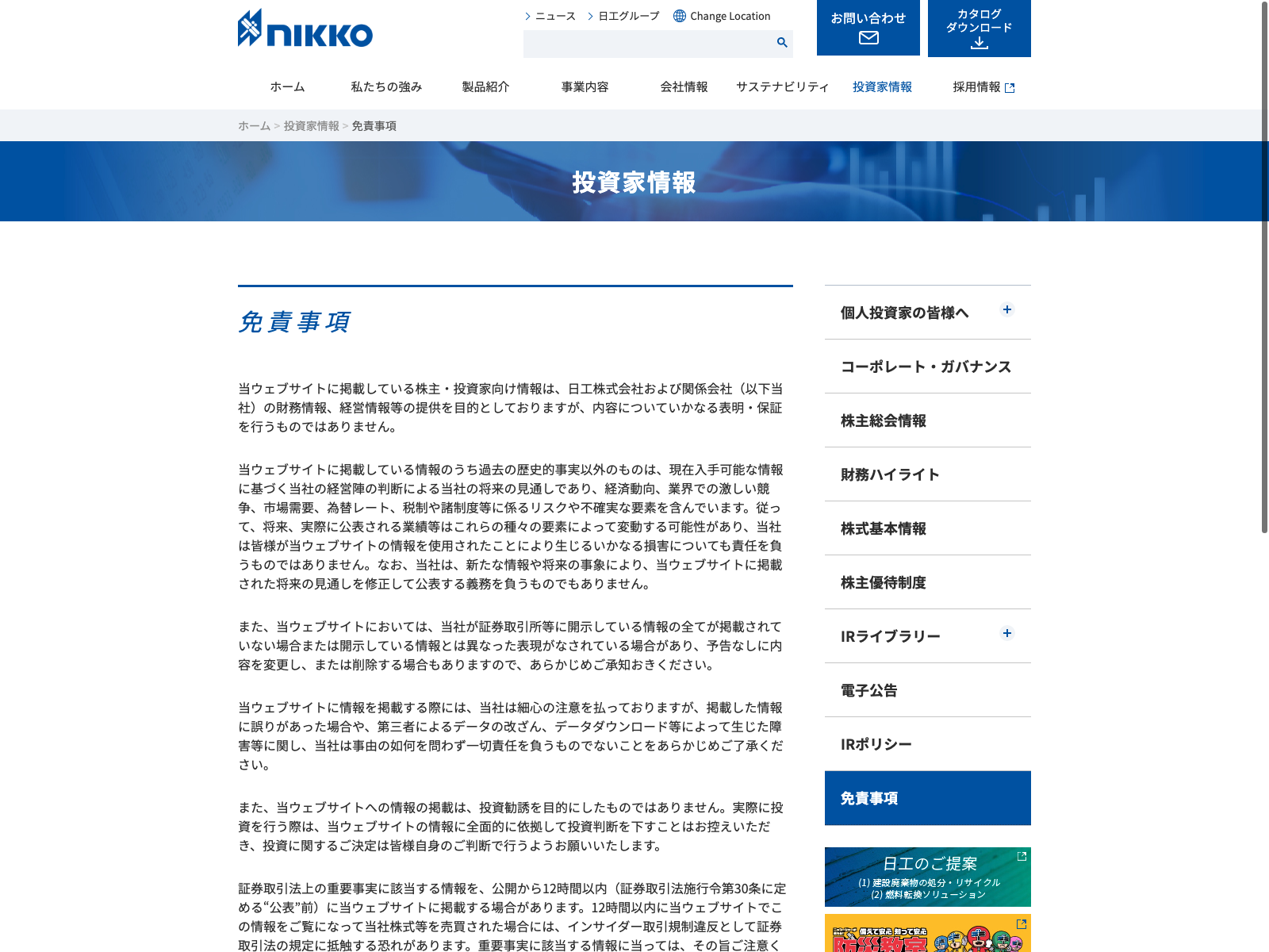 日工 Update:2022.10.31 カテゴリー:プライム 機械 サステナビリティ プライバシーポリシー 事業内容 免責注意事項 有価証券報告書 沿革 社長メッセージ 詳細 Visit 詳細 Visit