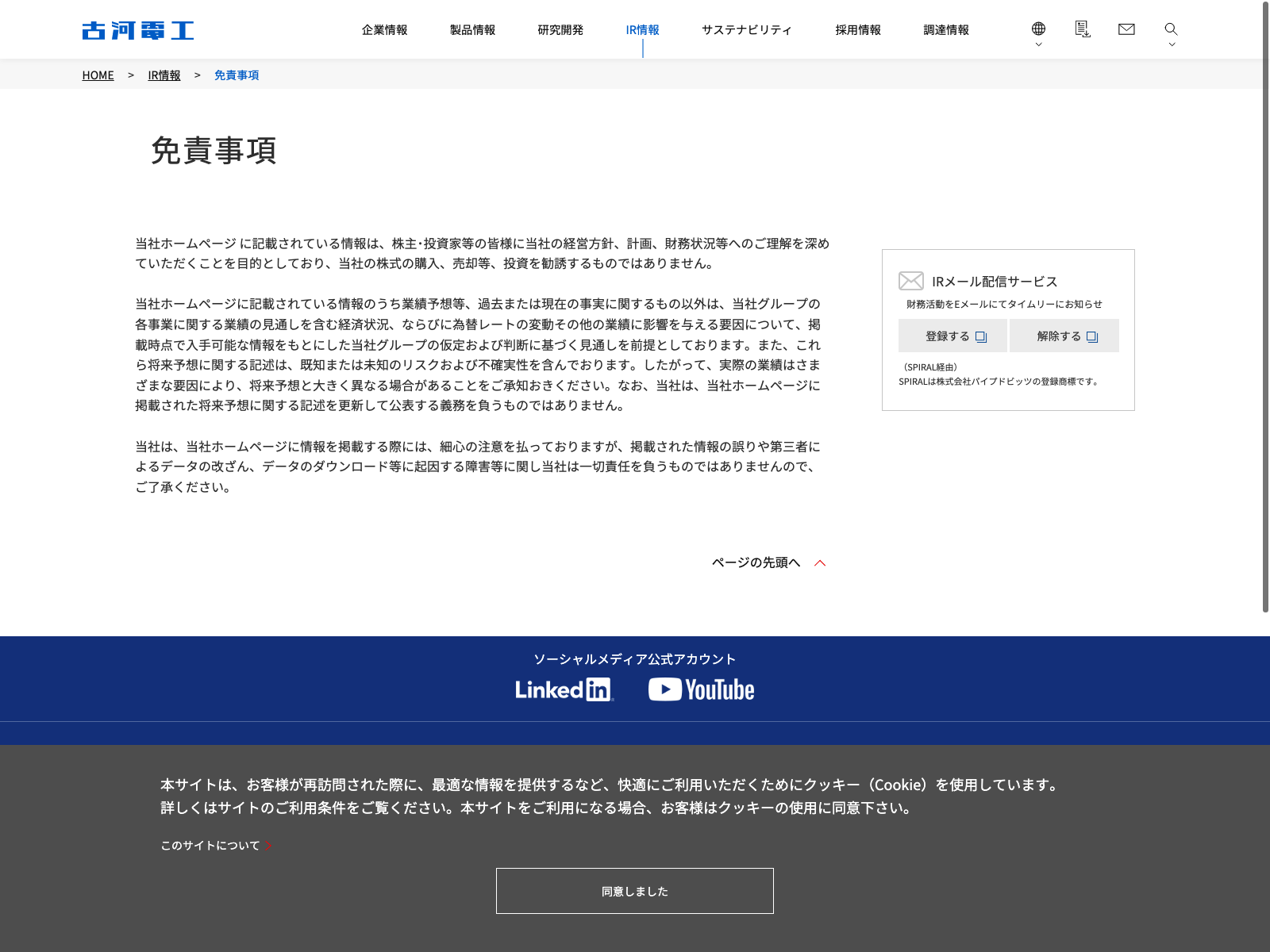 古河電気工業 Update:2022.10.31 カテゴリー:プライム 非鉄金属 コンプライアンス サステナビリティ ビジョン プライバシーポリシー 事業内容 免責注意事項 情報セキュリティ 有価証券報告書 社長メッセージ 詳細 Visit 詳細 Visit