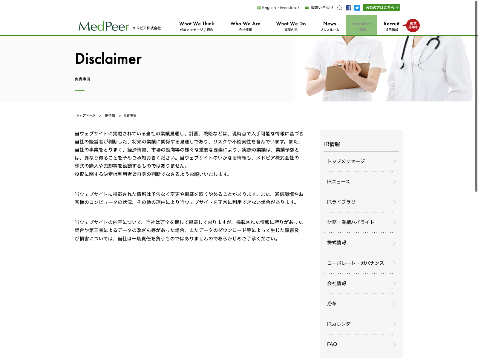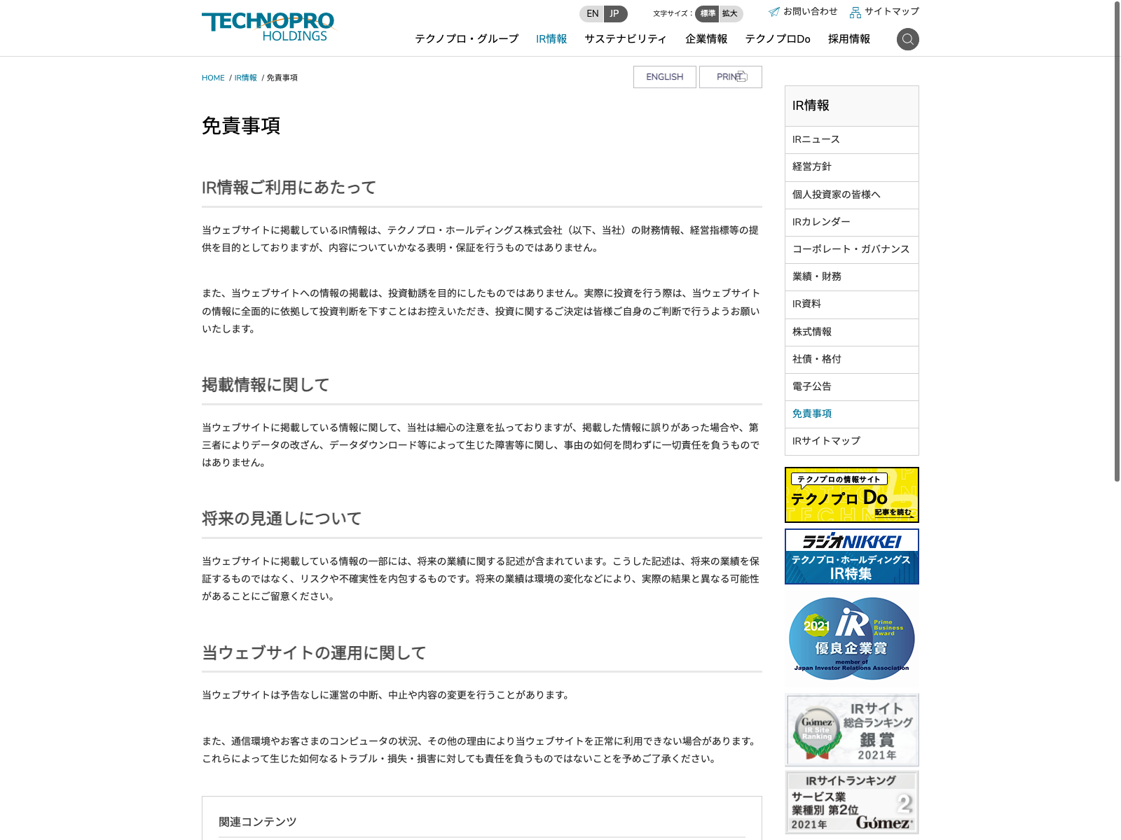 テクノプロ・ホールディングス Update:2022.10.31 カテゴリー:プライム サービス業 サステナビリティ プライバシーポリシー 免責注意事項 沿革 社長メッセージ 詳細 Visit 詳細 Visit
