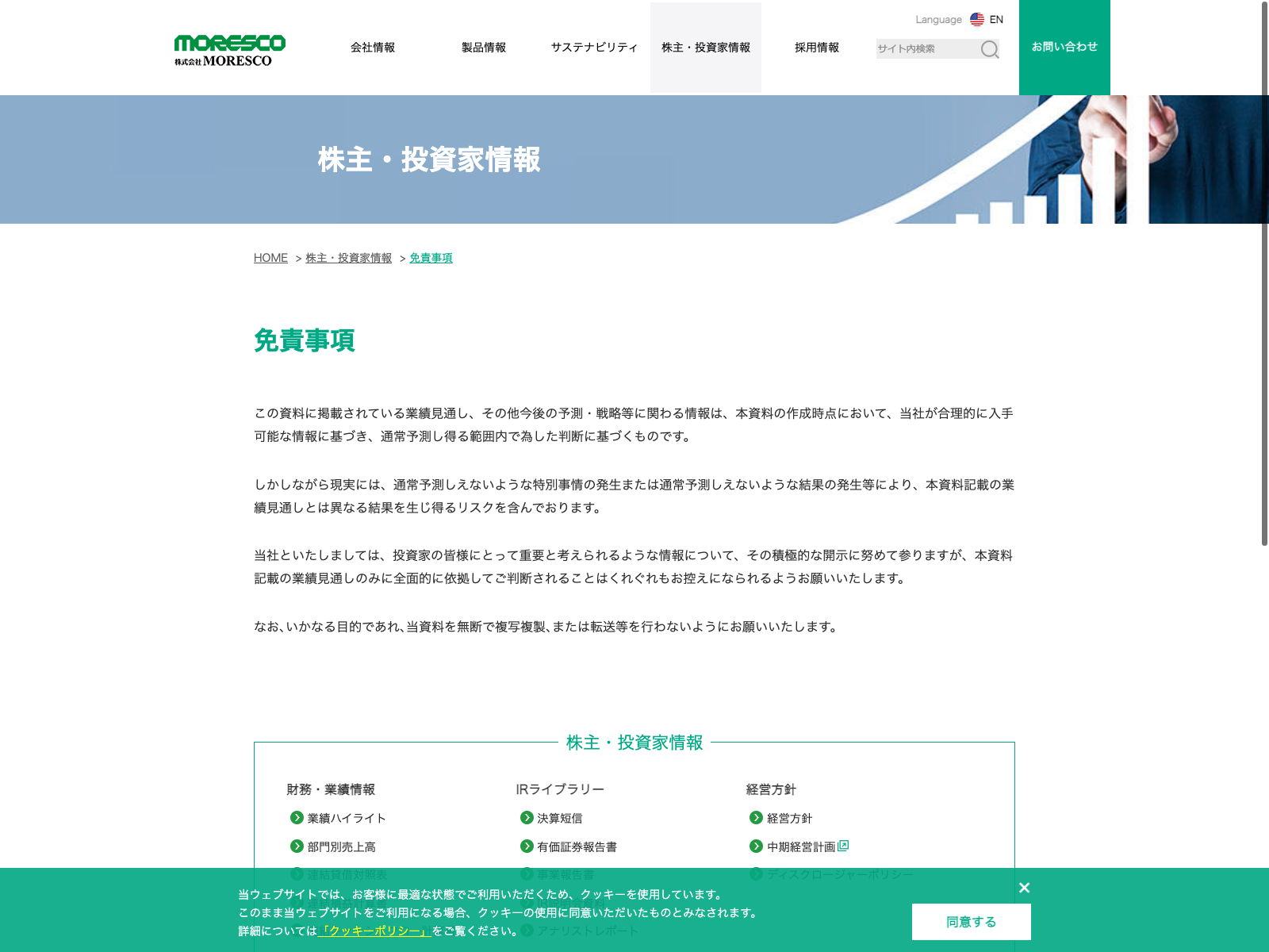 MORESCO Update:2022.10.31 カテゴリー:プライム 石油・石炭製品 サステナビリティ プライバシーポリシー 事業内容 免責注意事項 有価証券報告書 沿革 社長メッセージ 経営理念 詳細 Visit 詳細 Visit