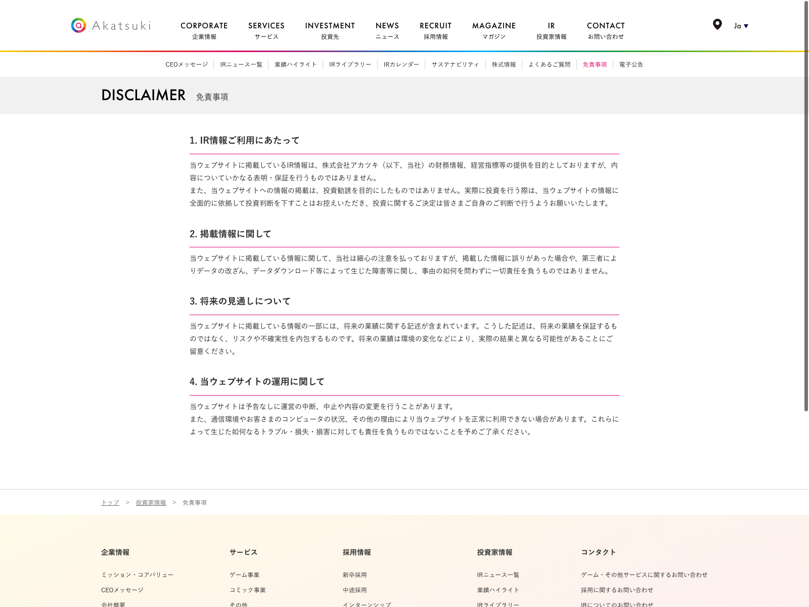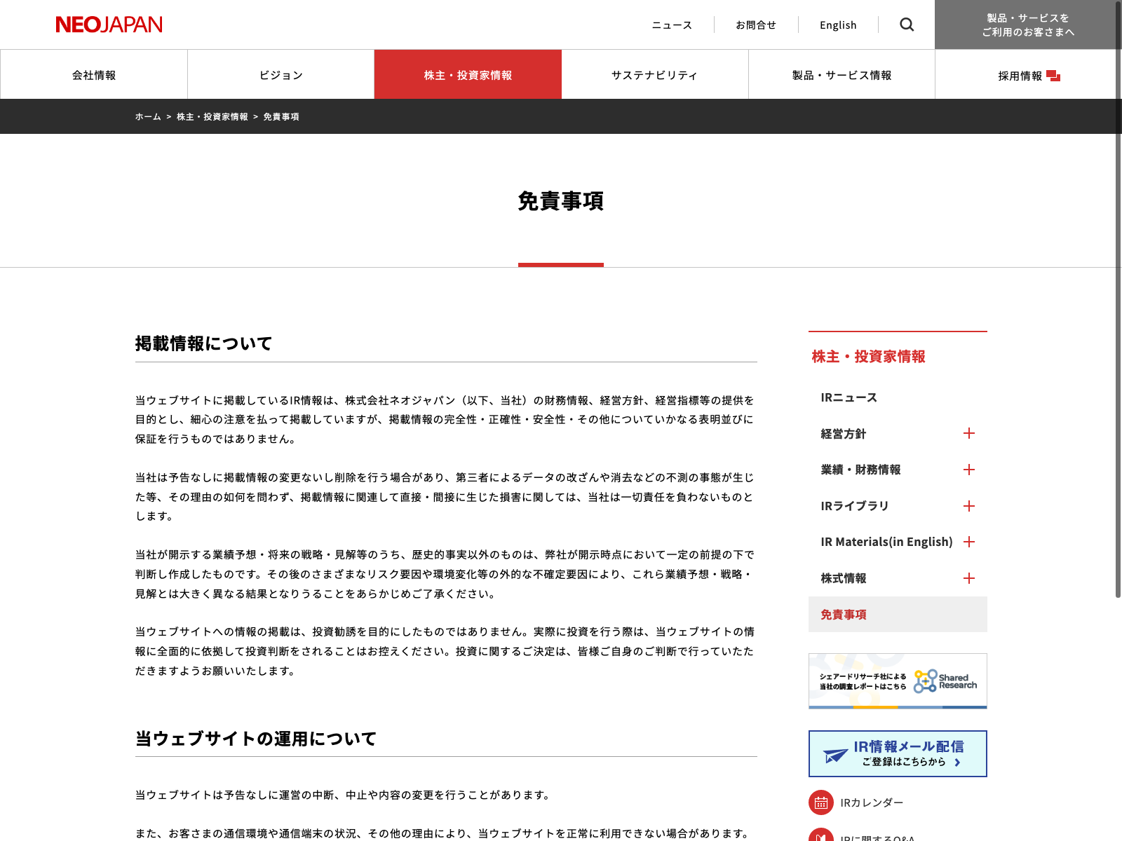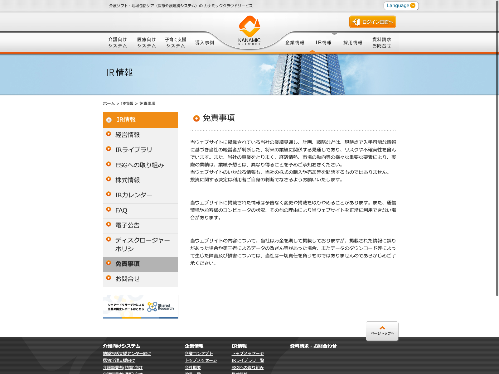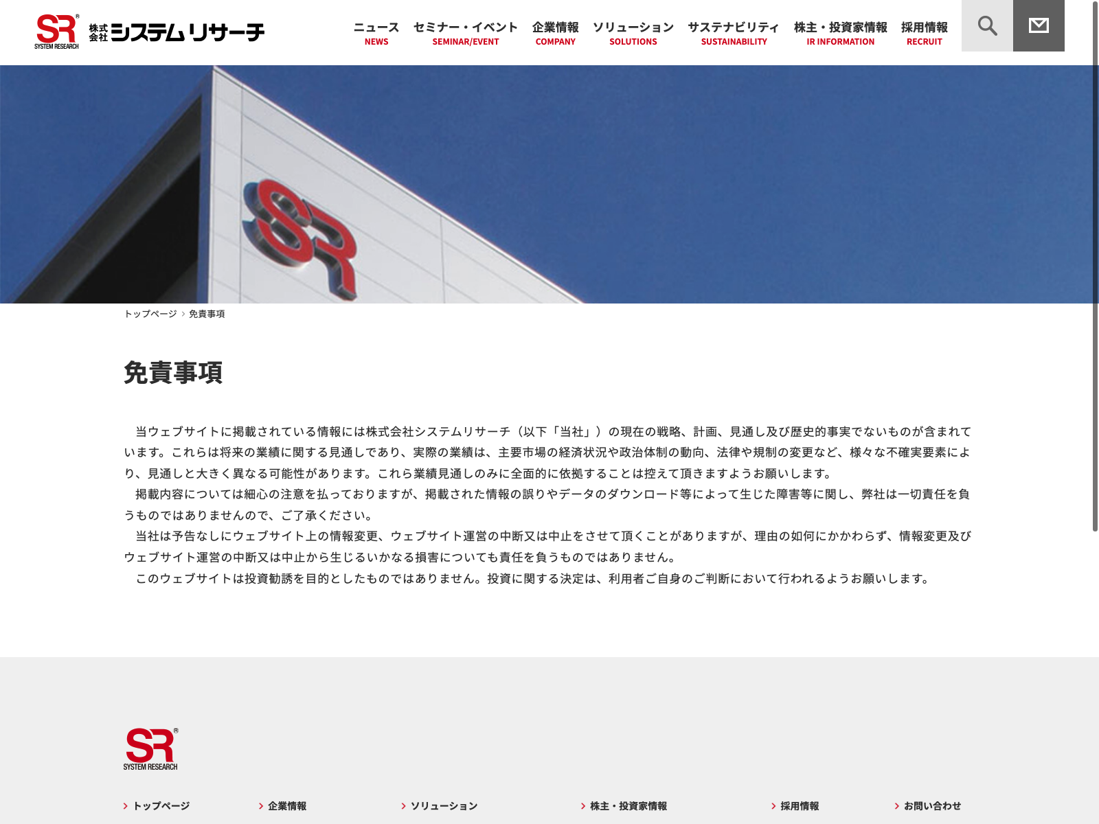 システムリサーチ Update:2022.10.31 カテゴリー:プライム 情報・通信業 IR情報 サステナビリティ プライバシーポリシー 事業内容 免責注意事項 情報セキュリティ 沿革 経営理念 詳細 Visit 詳細 Visit