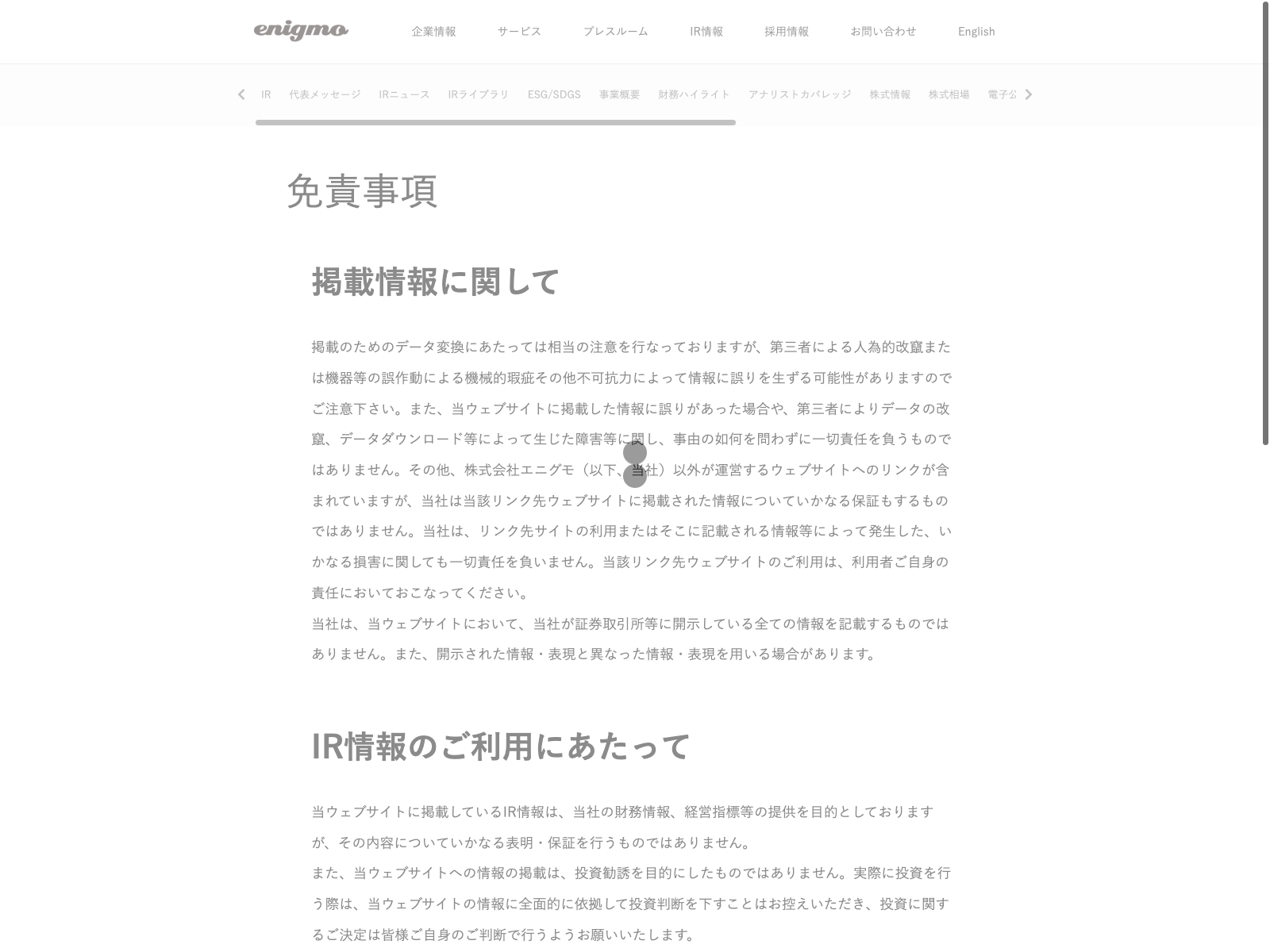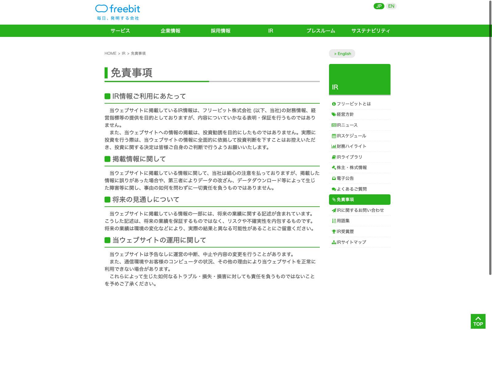 フリービット Update:2022.10.31 カテゴリー:プライム 情報・通信業 サステナビリティ ニュース一覧 プライバシーポリシー 事業内容 免責注意事項 有価証券報告書 沿革 詳細 Visit 詳細 Visit