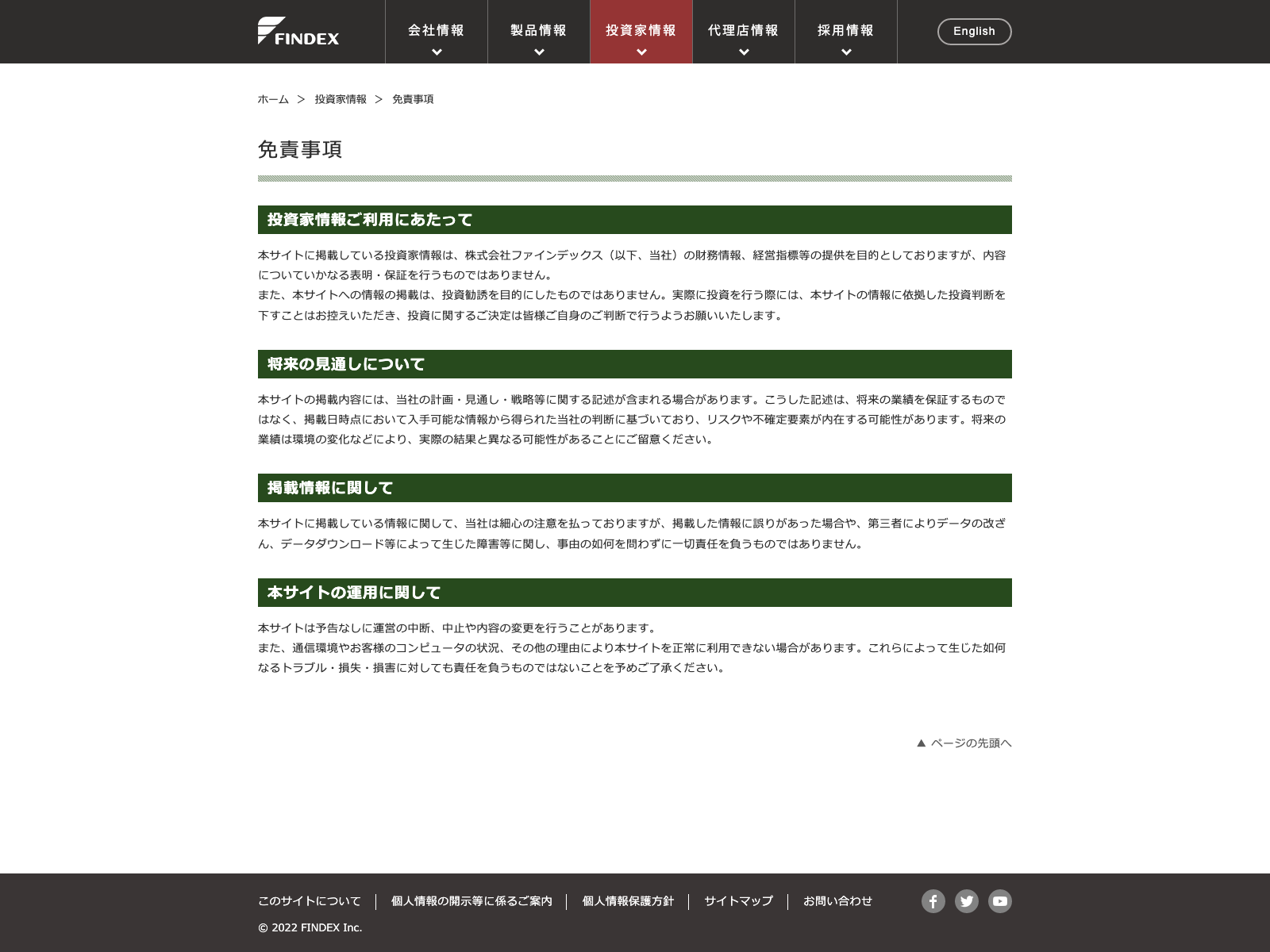 ファインデックス Update:2022.10.31 カテゴリー:プライム 情報・通信業 サステナビリティ プライバシーポリシー 免責注意事項 有価証券報告書 沿革 社長メッセージ 詳細 Visit 詳細 Visit