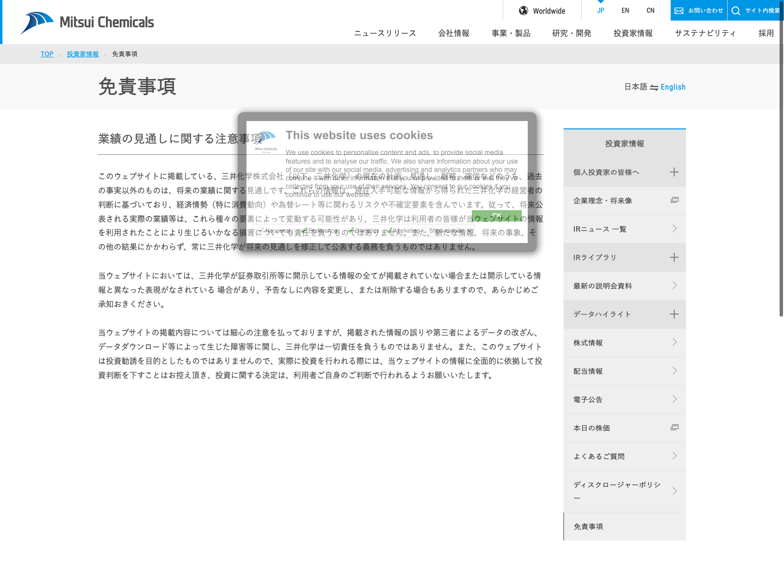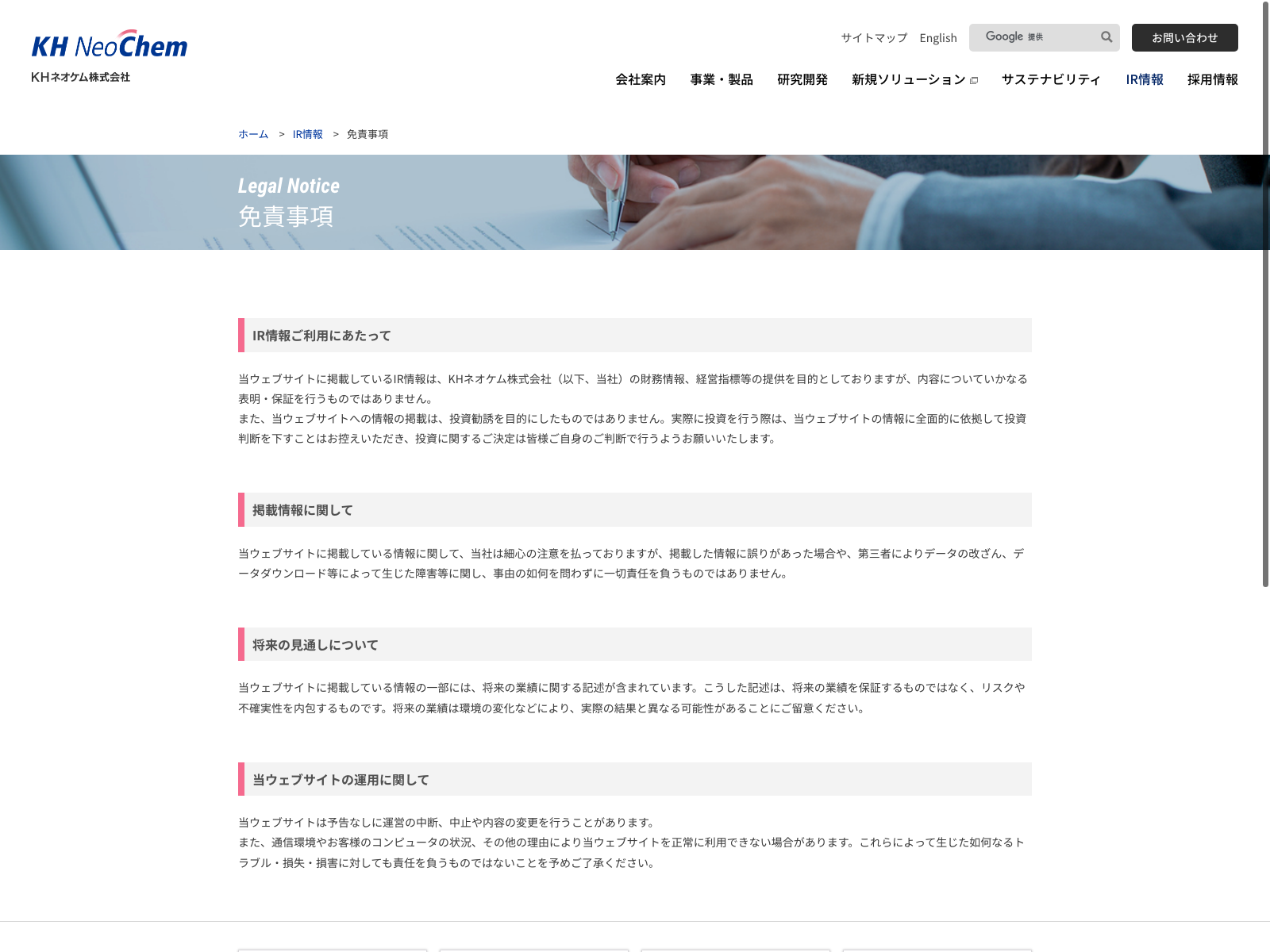 KHネオケム Update:2022.10.31 カテゴリー:プライム 化学 サステナビリティ ニュース一覧 プライバシーポリシー 事業内容 免責注意事項 沿革 社長メッセージ 詳細 Visit 詳細 Visit
