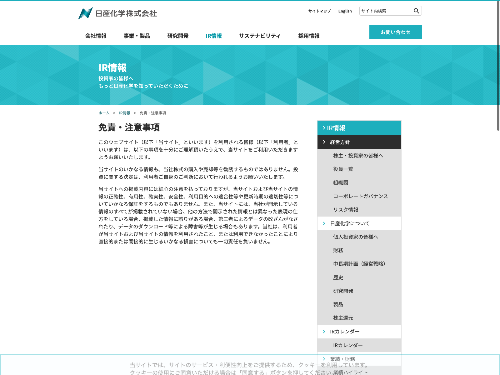 日産化学 Update:2022.10.31 カテゴリー:プライム 化学 コンプライアンス サステナビリティ プライバシーポリシー 免責注意事項 有価証券報告書 沿革 詳細 Visit 詳細 Visit