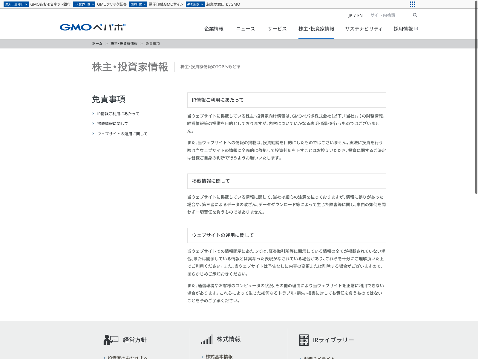 GMOペパボ Update:2022.10.31 カテゴリー:プライム 情報・通信業 IR情報 サステナビリティ ニュース一覧 免責注意事項 情報セキュリティ 有価証券報告書 沿革 社長メッセージ 詳細 Visit 詳細 Visit