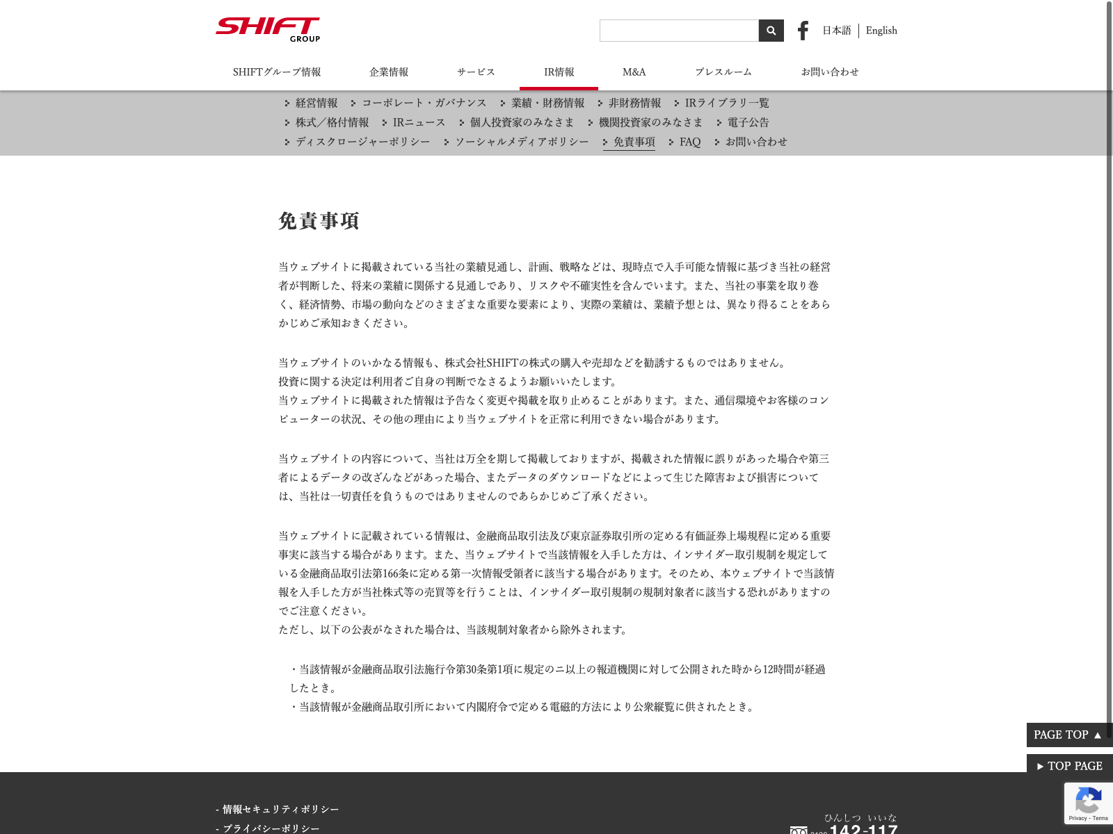 SHIFT Update:2022.10.31 カテゴリー:プライム 情報・通信業 コンプライアンス ニュース一覧 免責注意事項 情報セキュリティ 有価証券報告書 沿革 詳細 Visit 詳細 Visit