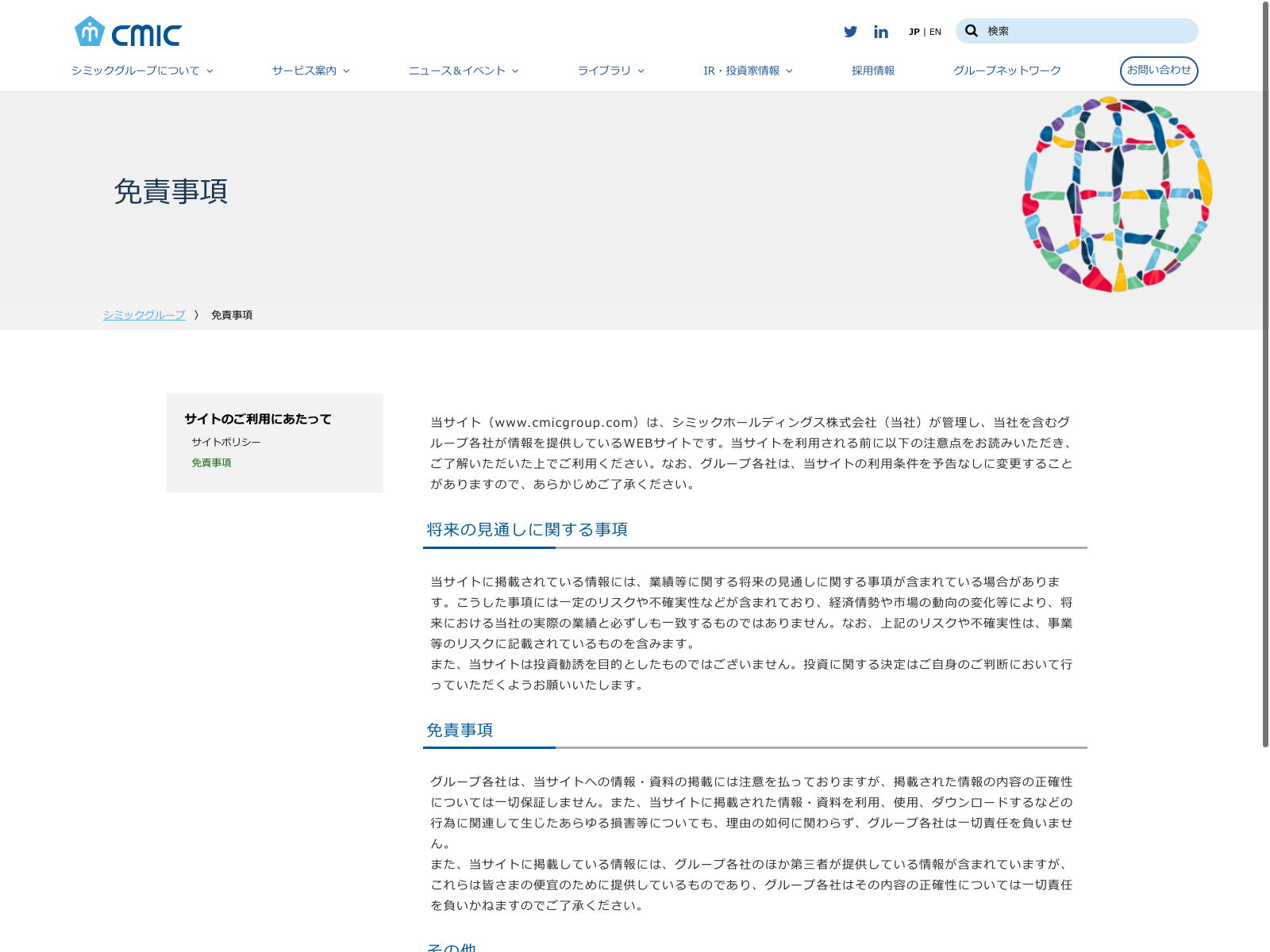 シミックホールディングス Update:2022.10.31 カテゴリー:プライム サービス業 IR情報 コンプライアンス プライバシーポリシー 事業内容 免責注意事項 情報セキュリティ 有価証券報告書 沿革 詳細 Visit 詳細 Visit