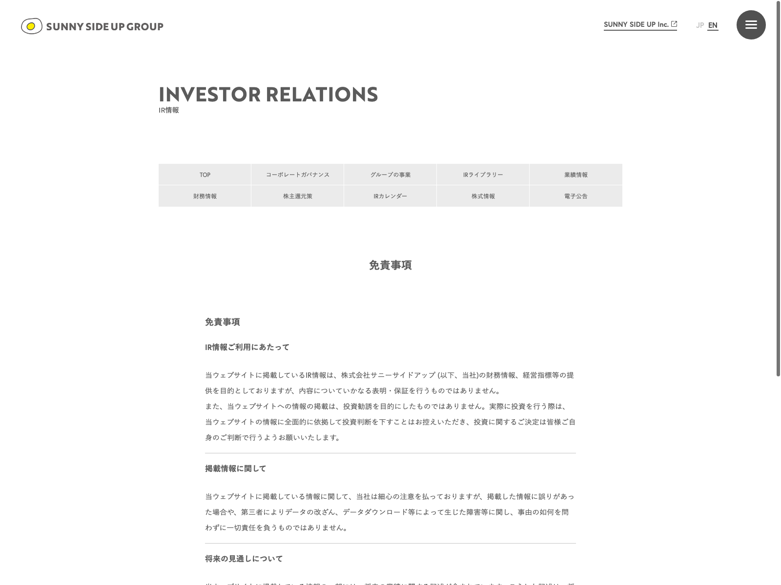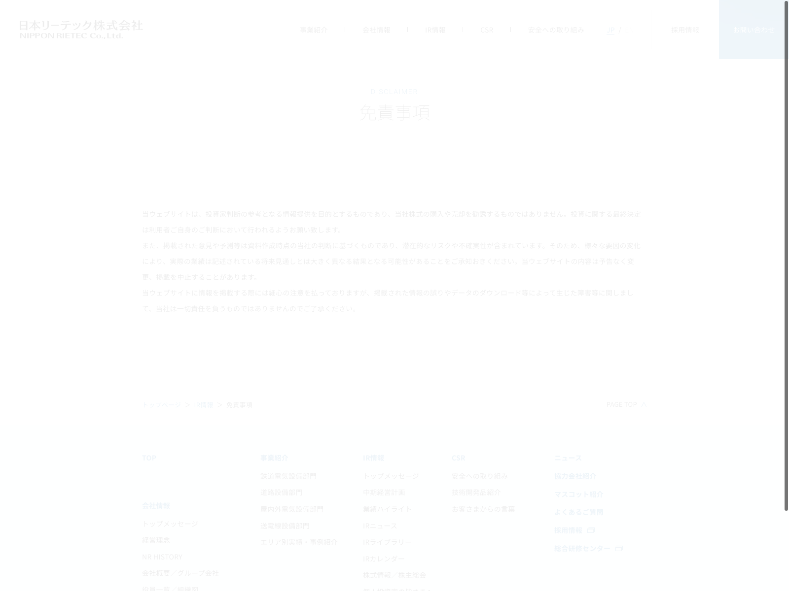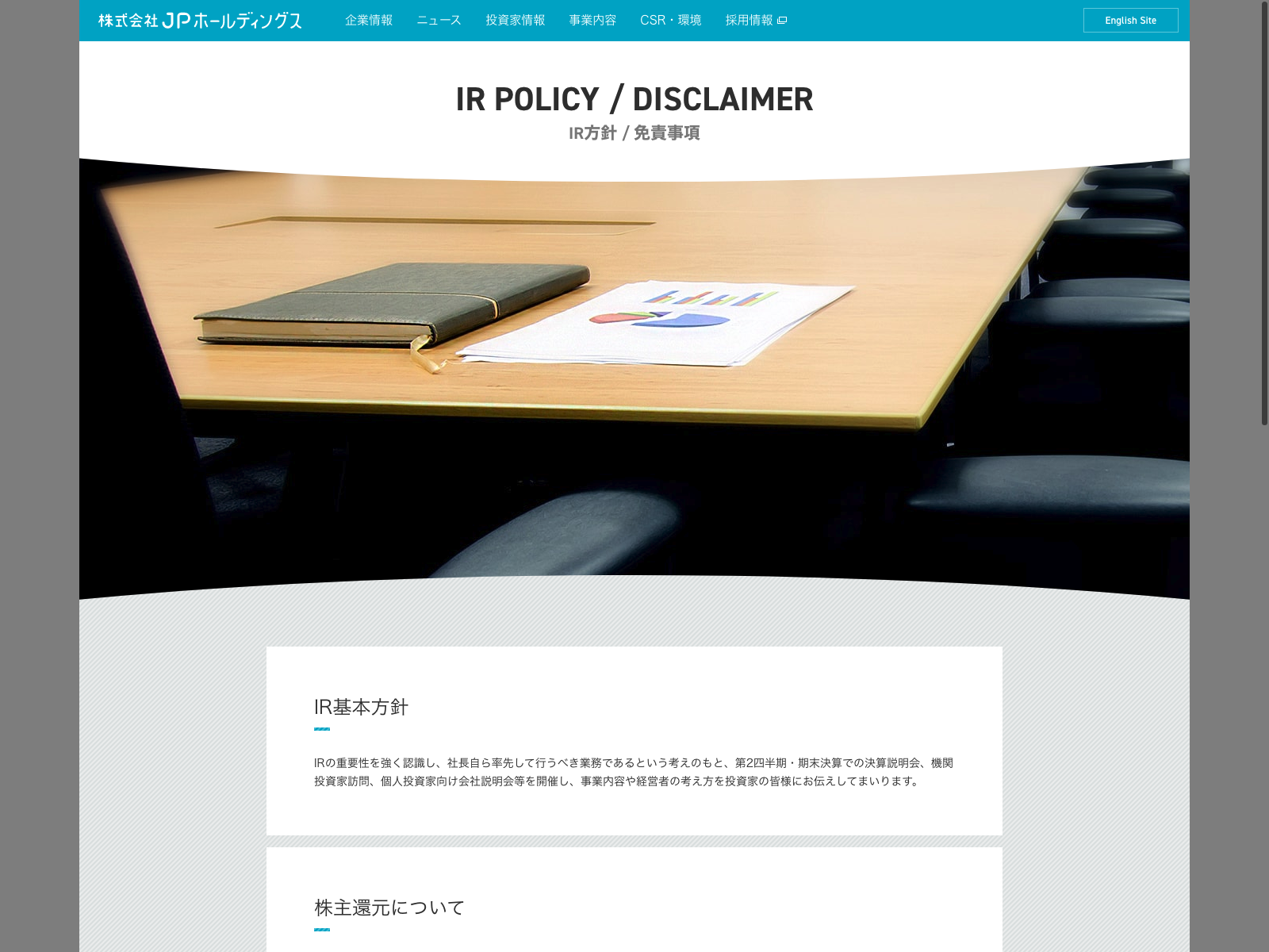JPホールディングス Update:2022.10.31 カテゴリー:プライム サービス業 IR情報 ニュース一覧 プライバシーポリシー 事業内容 免責注意事項 沿革 詳細 Visit 詳細 Visit