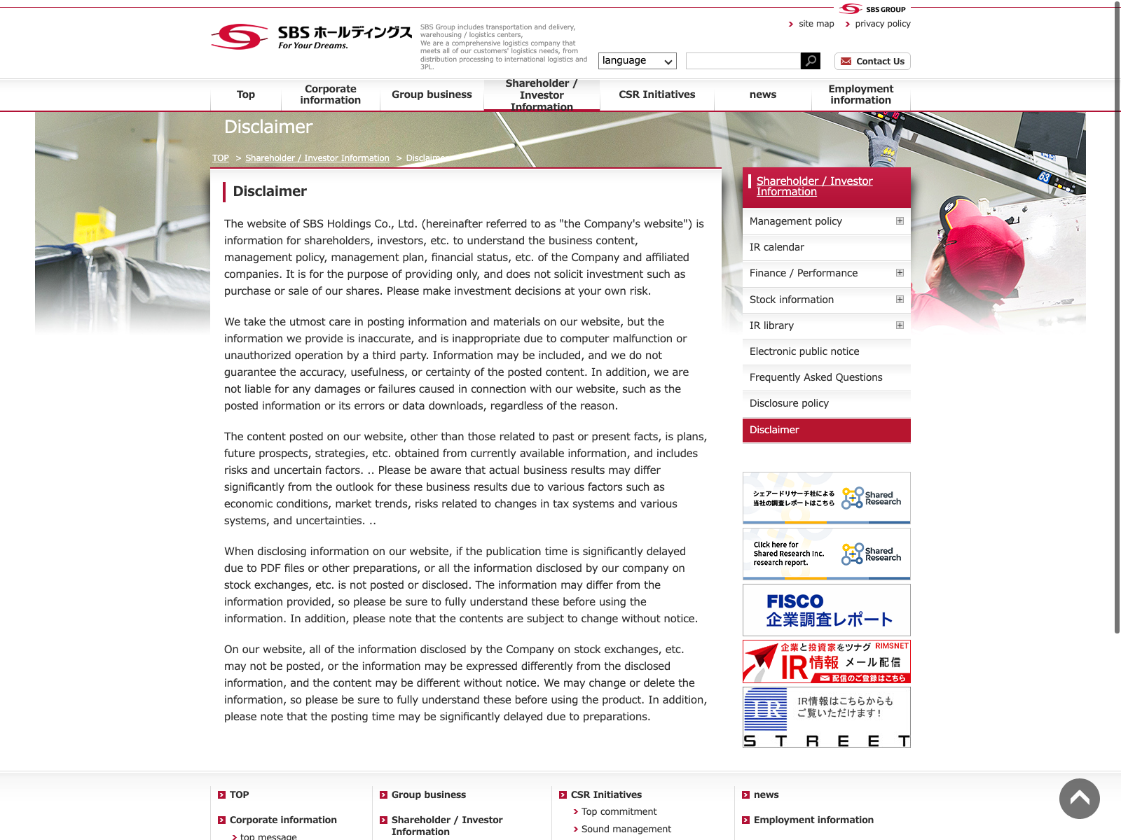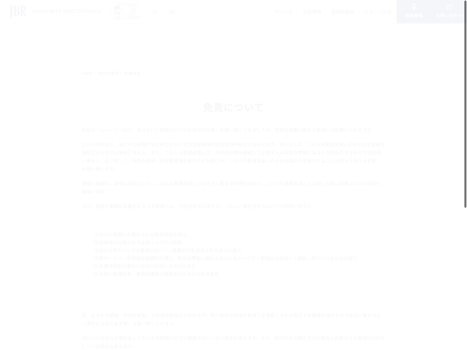 ジャパンベストレスキューシステム Update:2022.10.31 カテゴリー:プライム サービス業 コンプライアンス サステナビリティ 事業内容 免責注意事項 有価証券報告書 経営理念 詳細 Visit 詳細 Visit