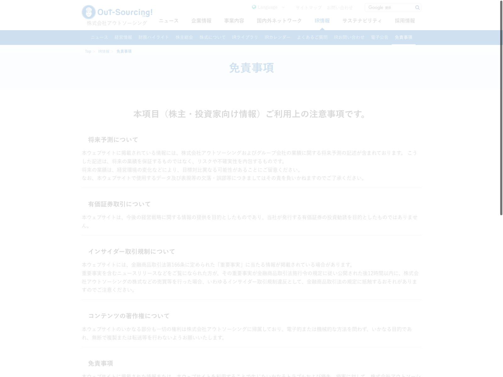 UTグループ Update:2022.10.31 カテゴリー:プライム サービス業 サステナビリティ ニュース一覧 ビジョン プライバシーポリシー 免責注意事項 沿革 詳細 Visit 詳細 Visit