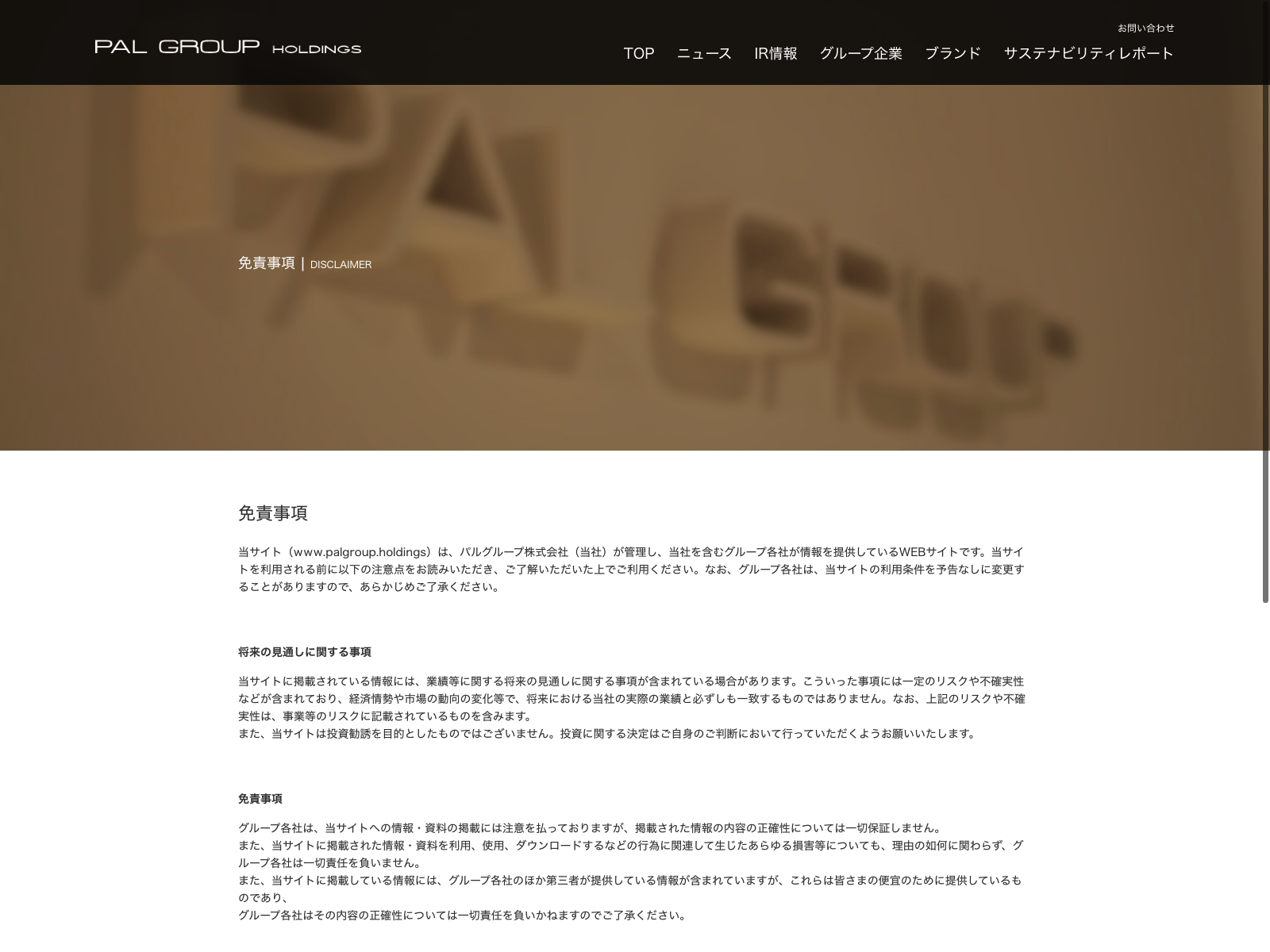 パルグループホールディングス Update:2022.10.31 カテゴリー:プライム 小売業 サステナビリティ ビジョン プライバシーポリシー 免責注意事項 沿革 社長メッセージ 詳細 Visit 詳細 Visit