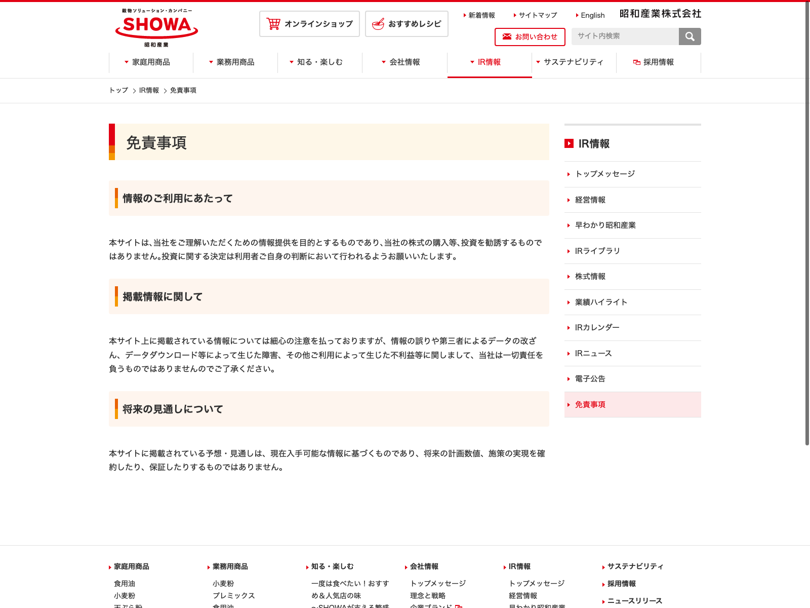 昭和産業 Update:2022.10.31 カテゴリー:プライム 食料品 サステナビリティ ニュース一覧 プライバシーポリシー 事業内容 免責注意事項 情報セキュリティ 詳細 Visit 詳細 Visit